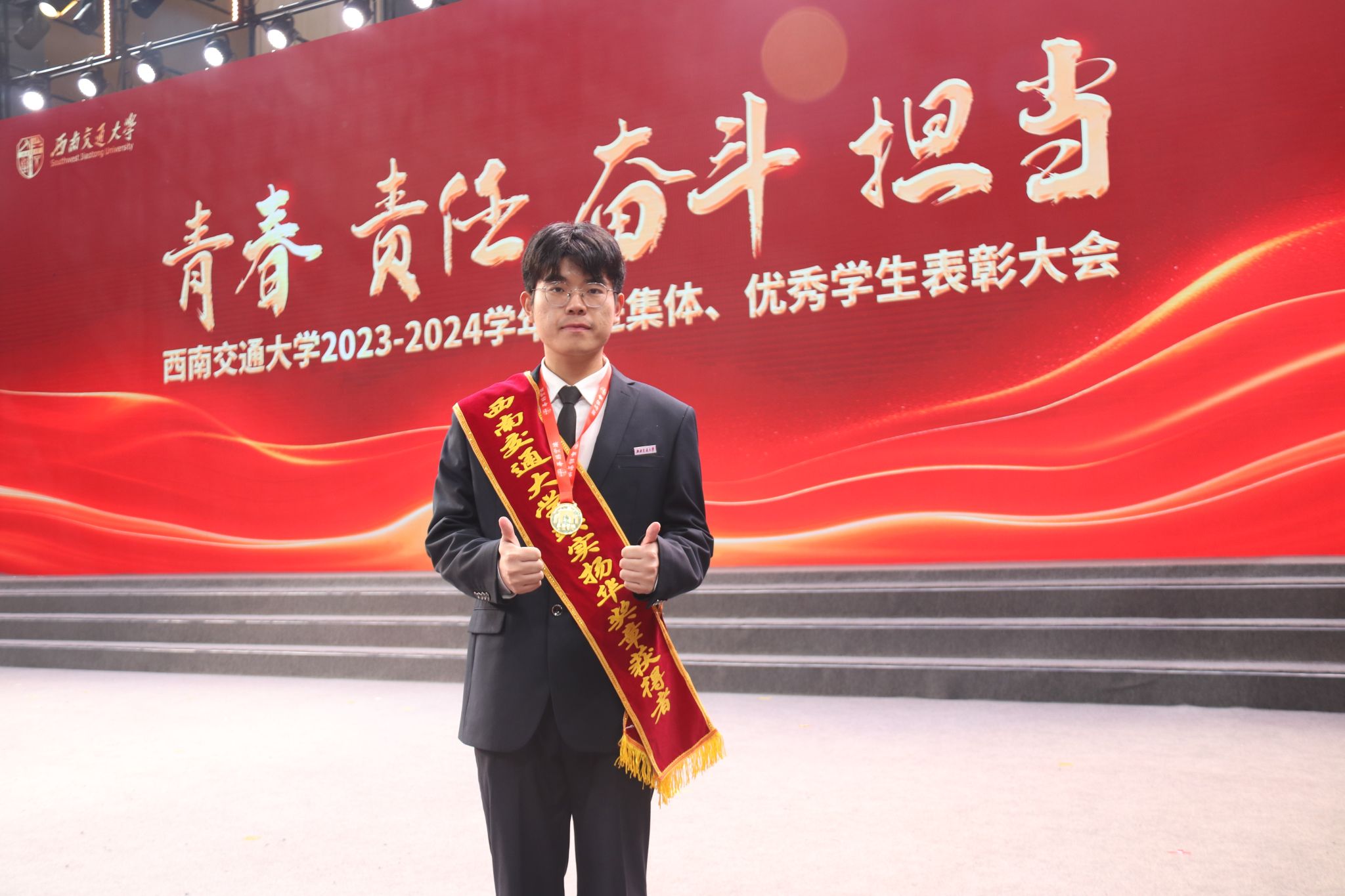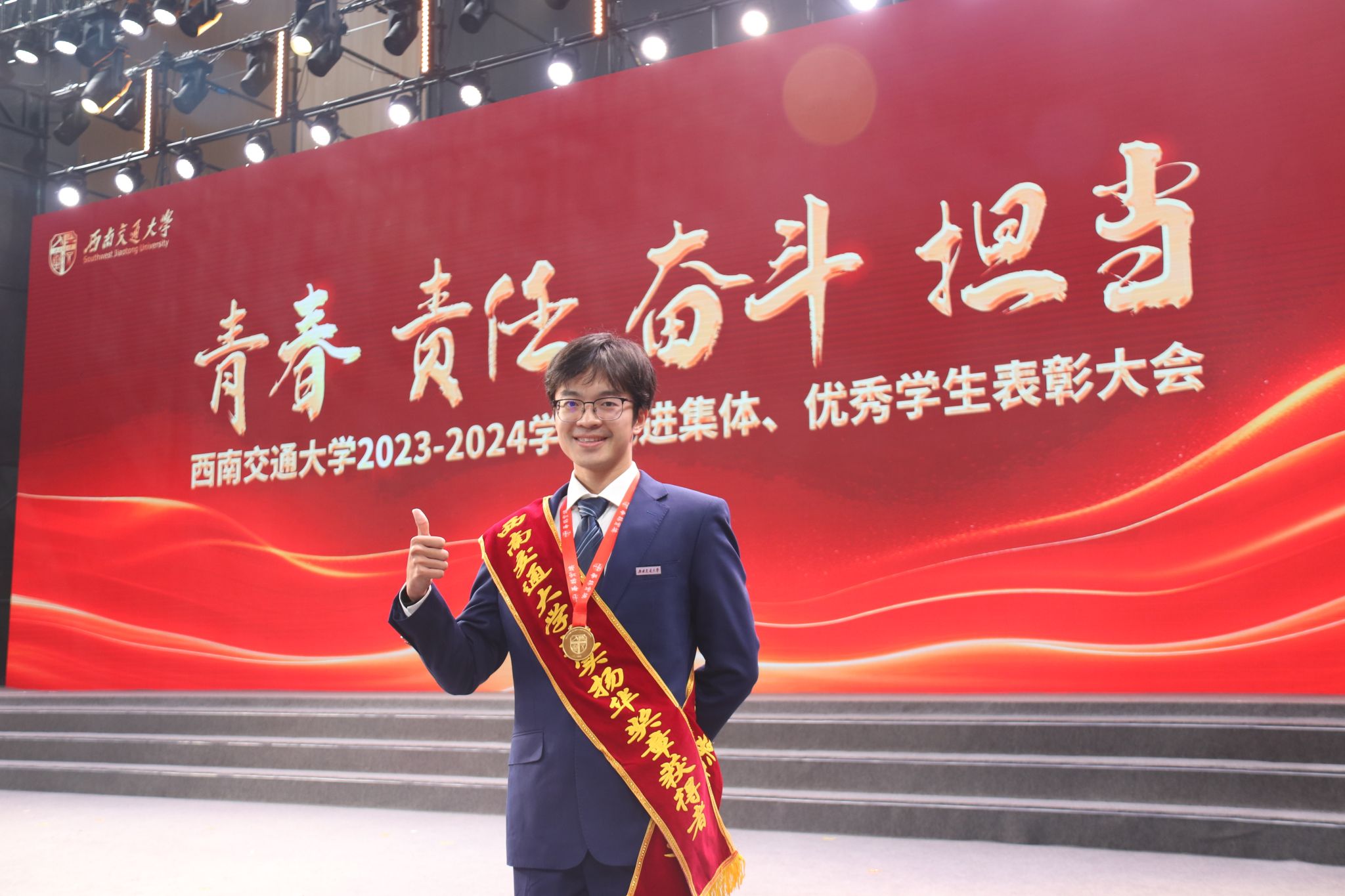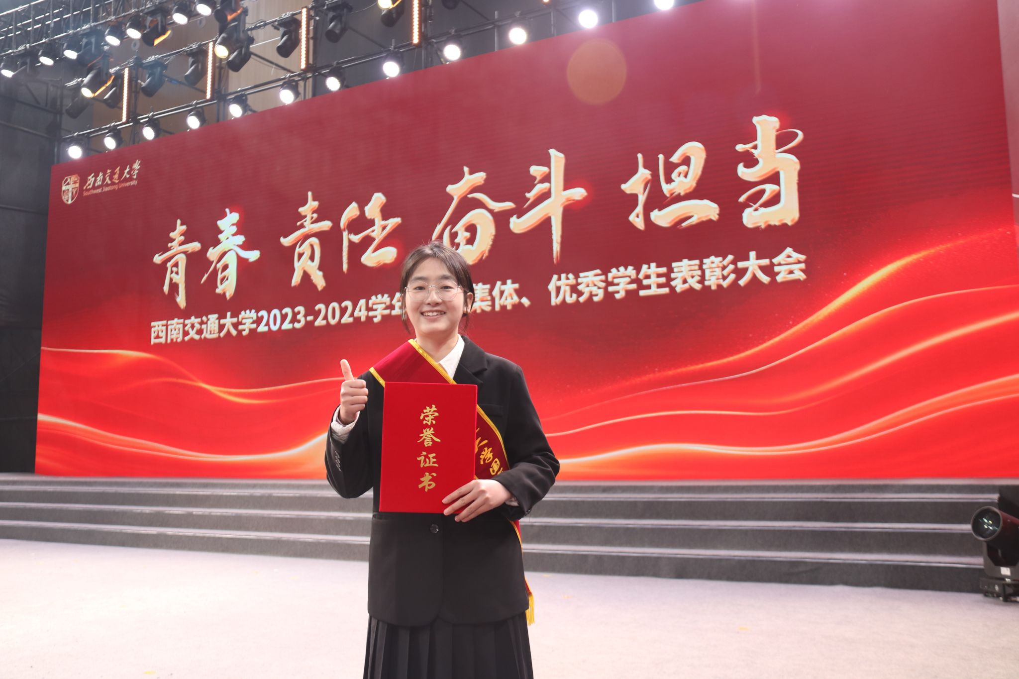 2021级本科生黄雅洁作为国家奖学金获奖代表接受表彰。刻苦是他们身上凸显出的力量,优秀是他们身上折射的符号,他们用热情,书写青春奋斗的诗篇,用榜样精神引领交大学子接续奋斗,展现了色色啦