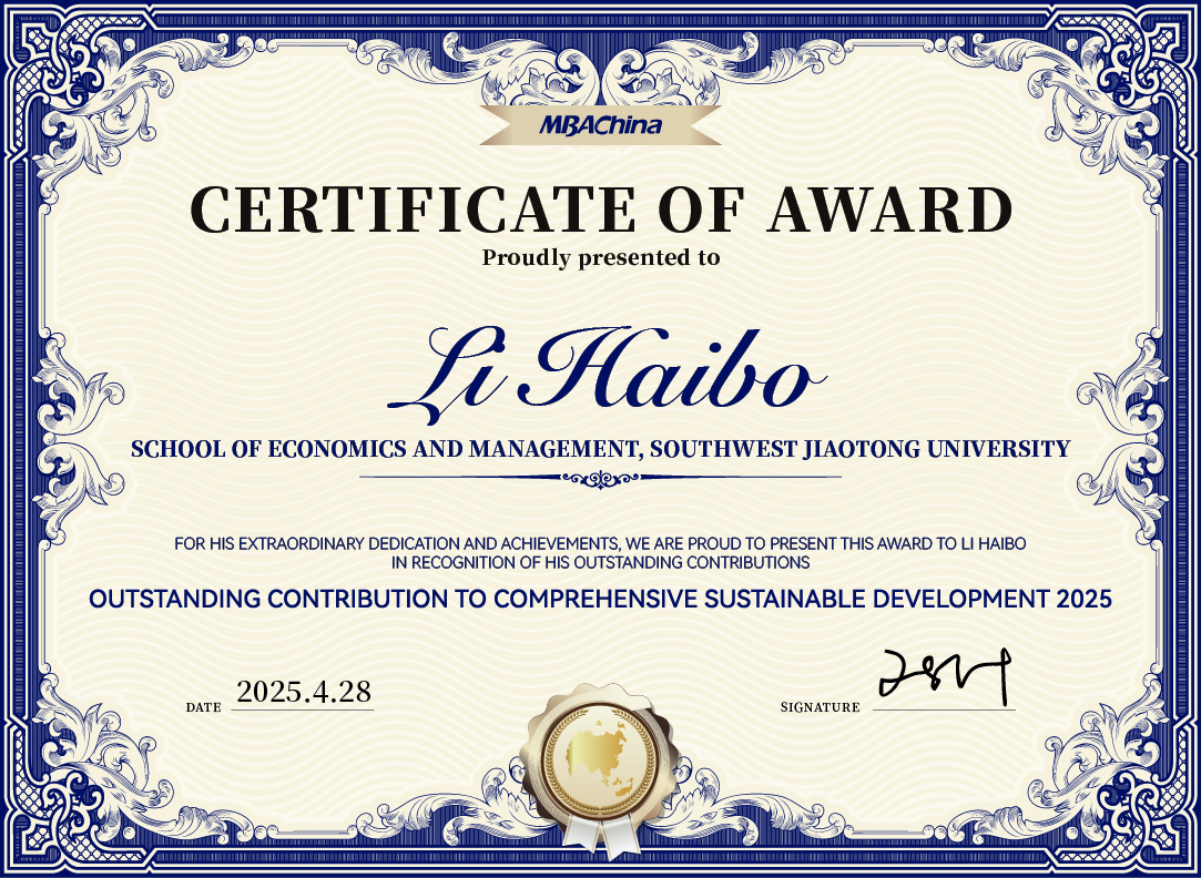 专业学位教育中心主任李海波,将ESG理念落地,用教育、研究和实践,为亚洲特色的可持续发展做出重要贡献,获得“2025年度综合可持续发展杰出贡献奖”。