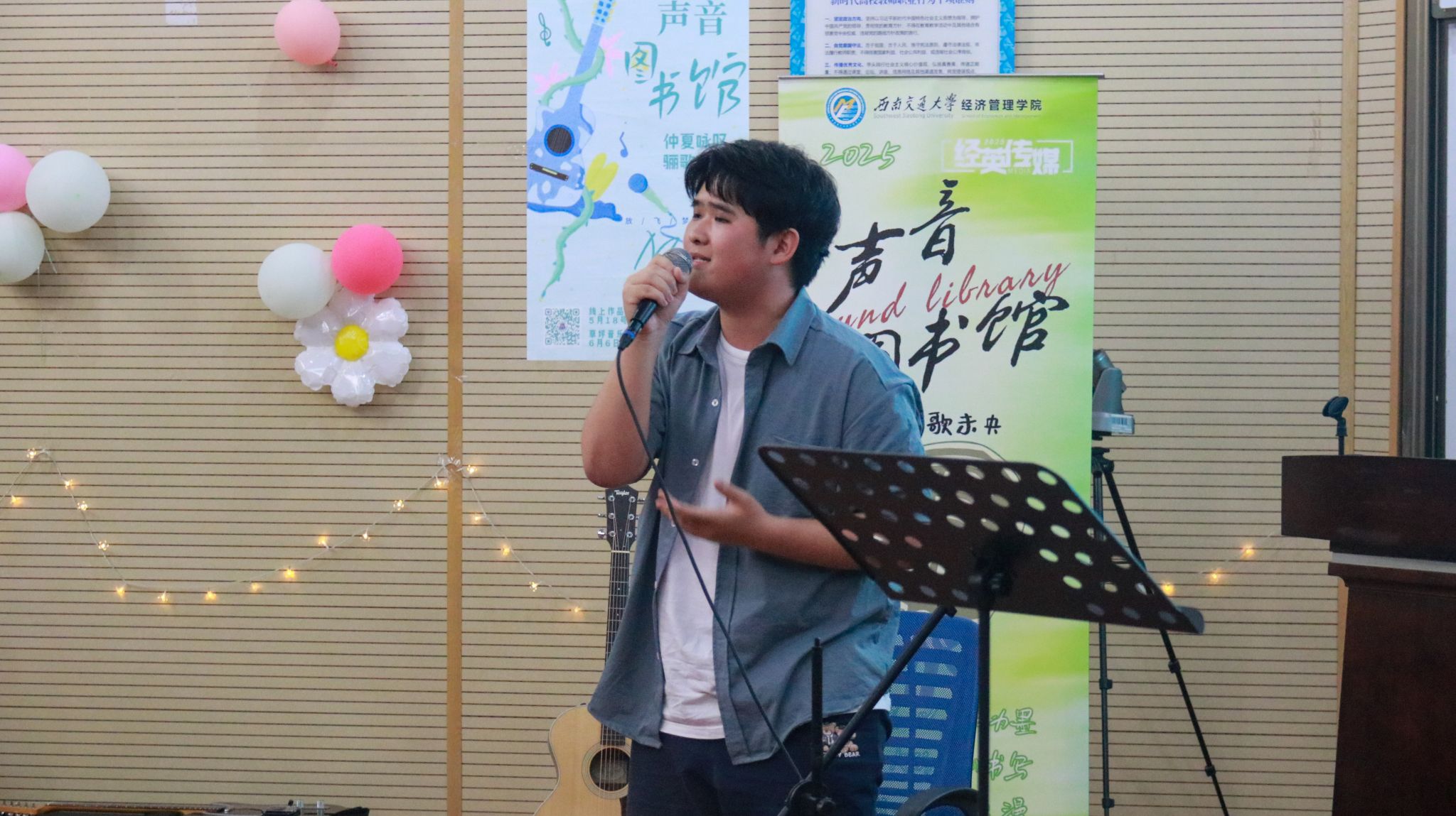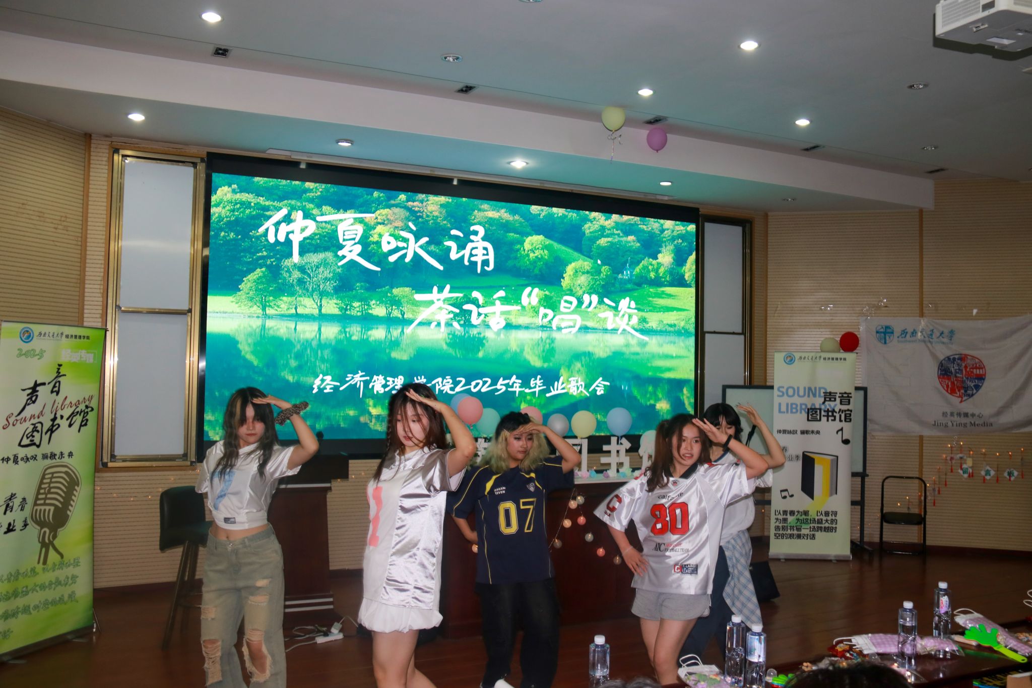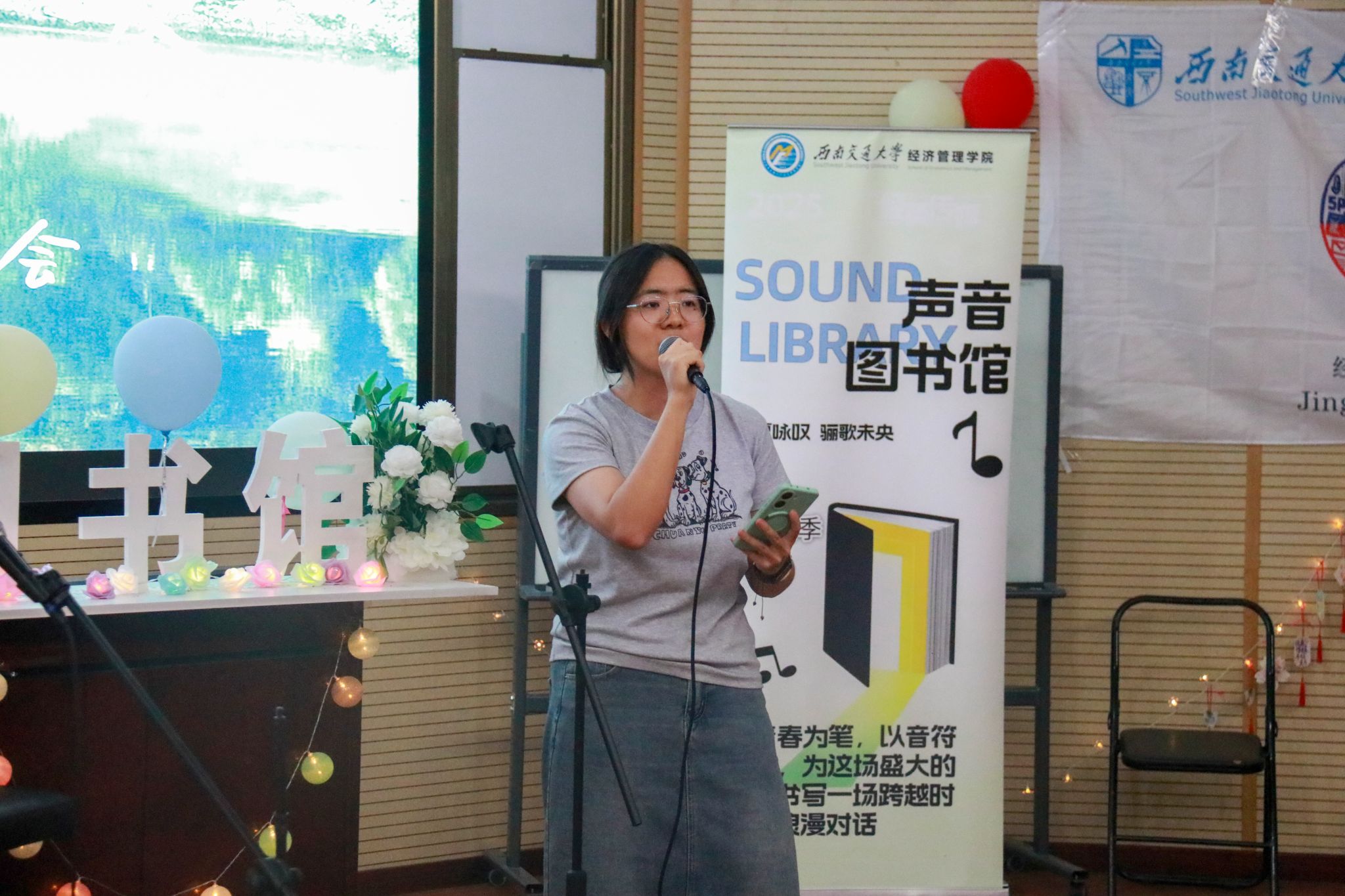 党委书记蒋佳,党委副书记余小英,交大之声台长万玘玥,学院辅导员老师与学院同学们在音乐里共话情谊。