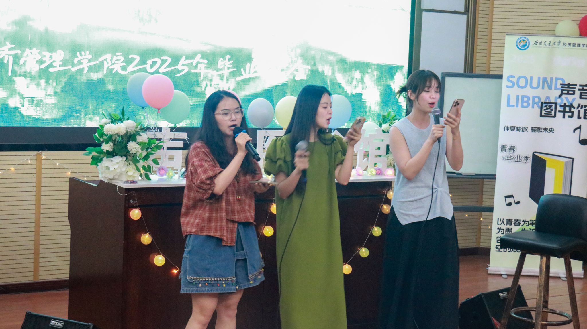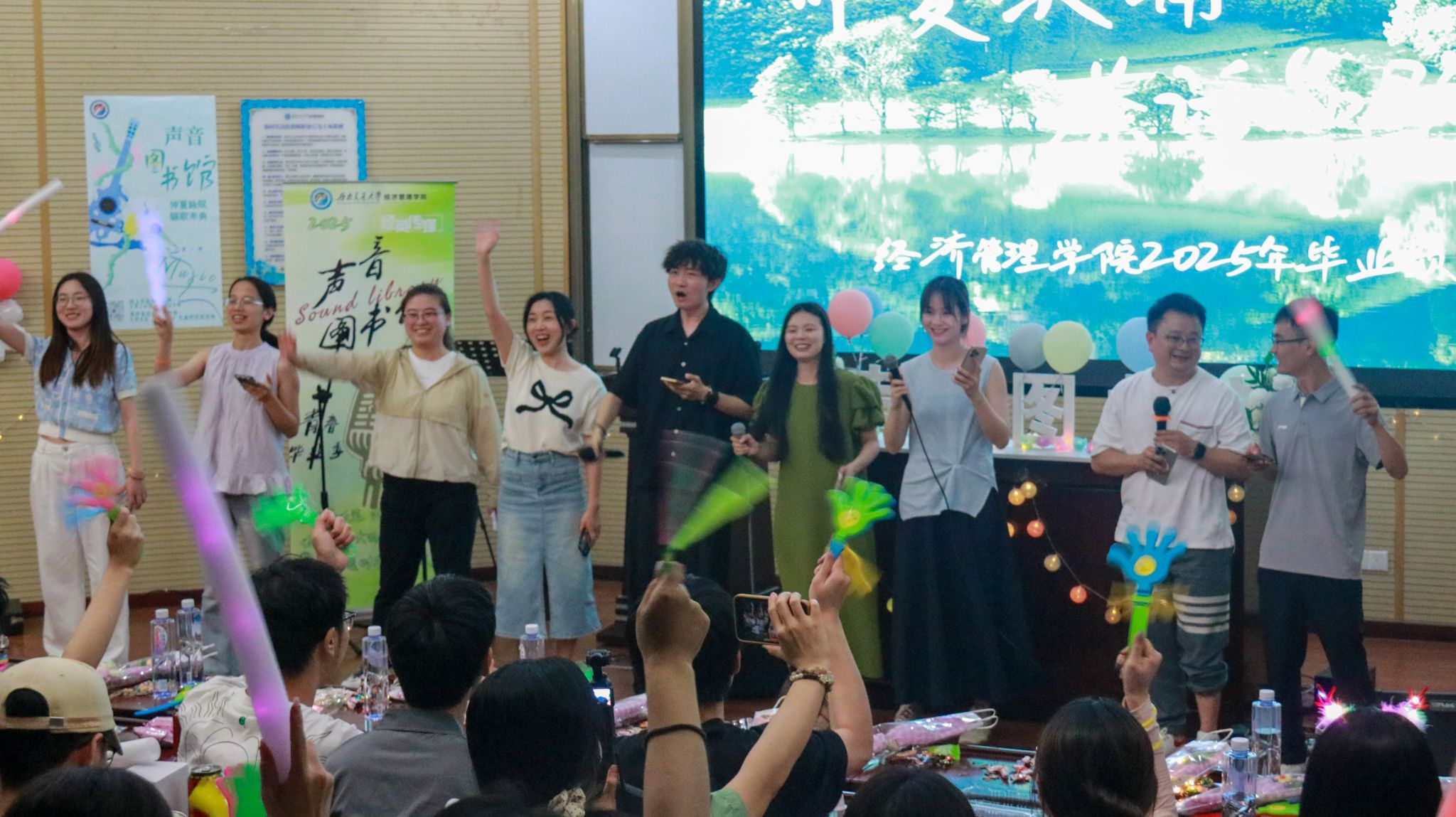 《匆匆那年》《岁月如歌》《你曾是少年》……2025届毕业班学子们用歌声怀念在经管学院的美好往事。那些熟悉的旋律像时间胶囊,瞬间唤回毕业生们初入校门时的记忆碎片,每一帧画面都饱含欢笑与眼泪交织的味道;歌声与话语的末尾,无一不坠着一份沉甸甸的不舍。