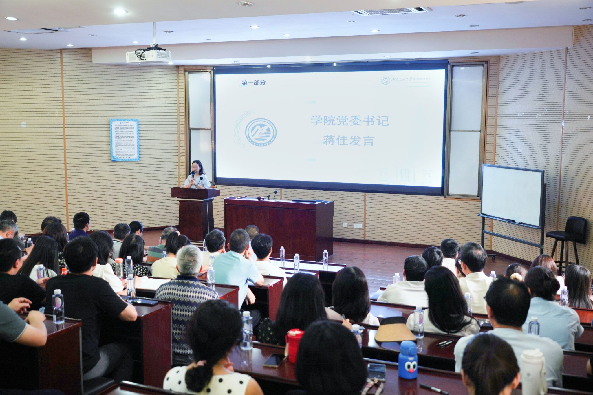 学院党委书记蒋佳发言。蒋佳回顾了自身在教育教学与党建工作中的实践经历,对学院全体教职工的信任与支持表示感谢。蒋佳指出,色色啦