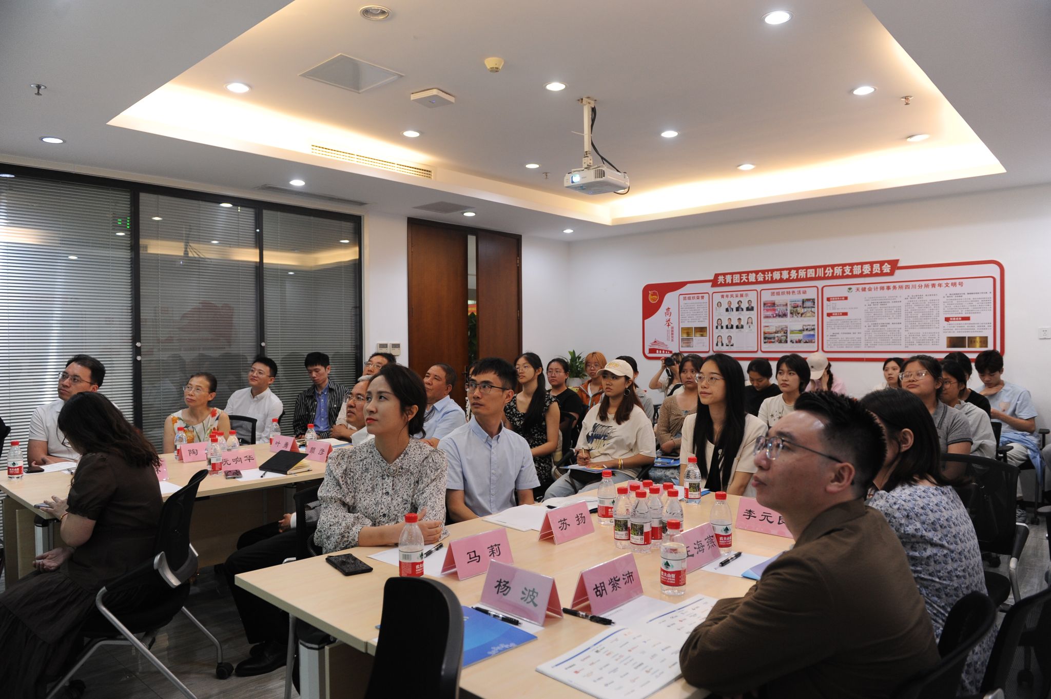 参观结束后,师生落座会议室,与事务所工作人员展开交流讨论。四川省注册会计师协会秘书长颜彦鼓励青年在会计行业坚守深耕,铸就复合型专业能力;四川分所总经理阮响华剖析了当今会计行业数字化转型以及行业边界模糊化的趋势,向交大学子发出实践邀请。随后,学院会计系主任叶勇介绍了学院会计专业的发展历史,期待通过本次交流参访进一步深化校企合作,为学生打开广阔的实践平台。
