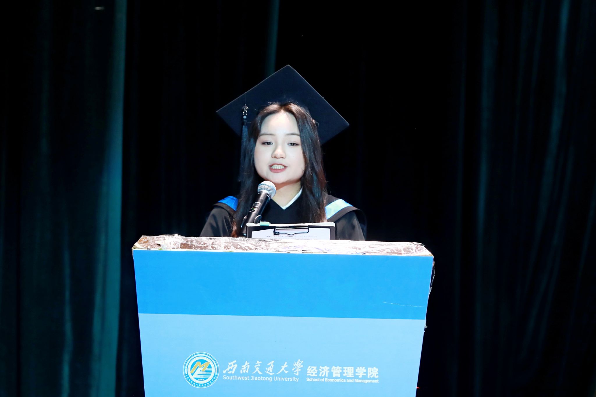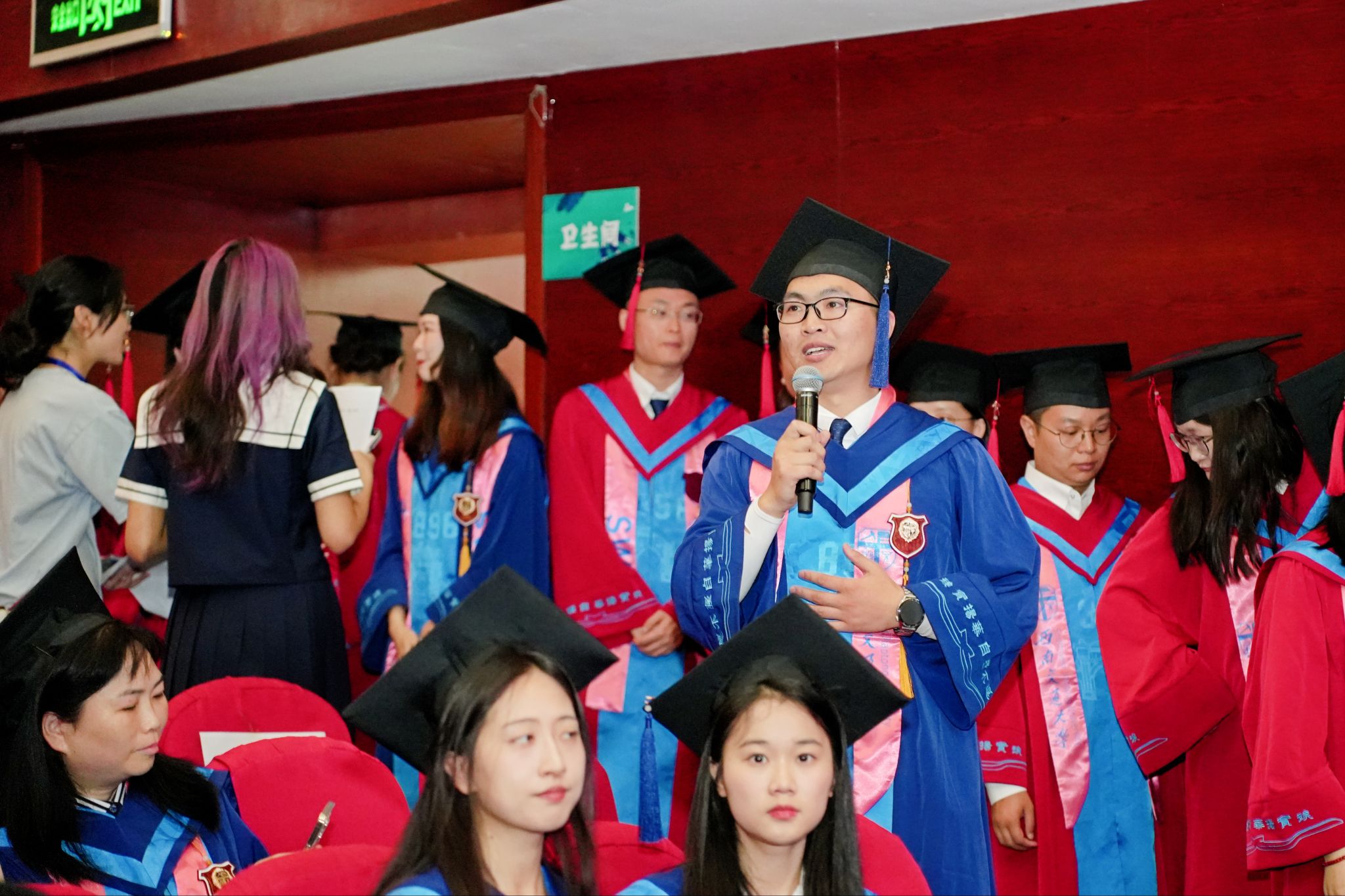 本科生毕业生代表毛宇欣、研究生毕业生代表李若晨、MBA毕业生代表张永恒分别发言。毛宇欣回顾了自己从懵懂到成熟的大学成长经历;李若晨分享了自己在硕士阶段学术研究、实践工作等方面获得的能力提升和成长;张永恒分享了自己奔走在课堂与职场之间的求学之路,不忘初心、拥抱挑战,在前行中连接彼此、照亮他人。毕业生代表真情实感的流露,饱含着对学院老师、同窗挚友的不舍与感谢。