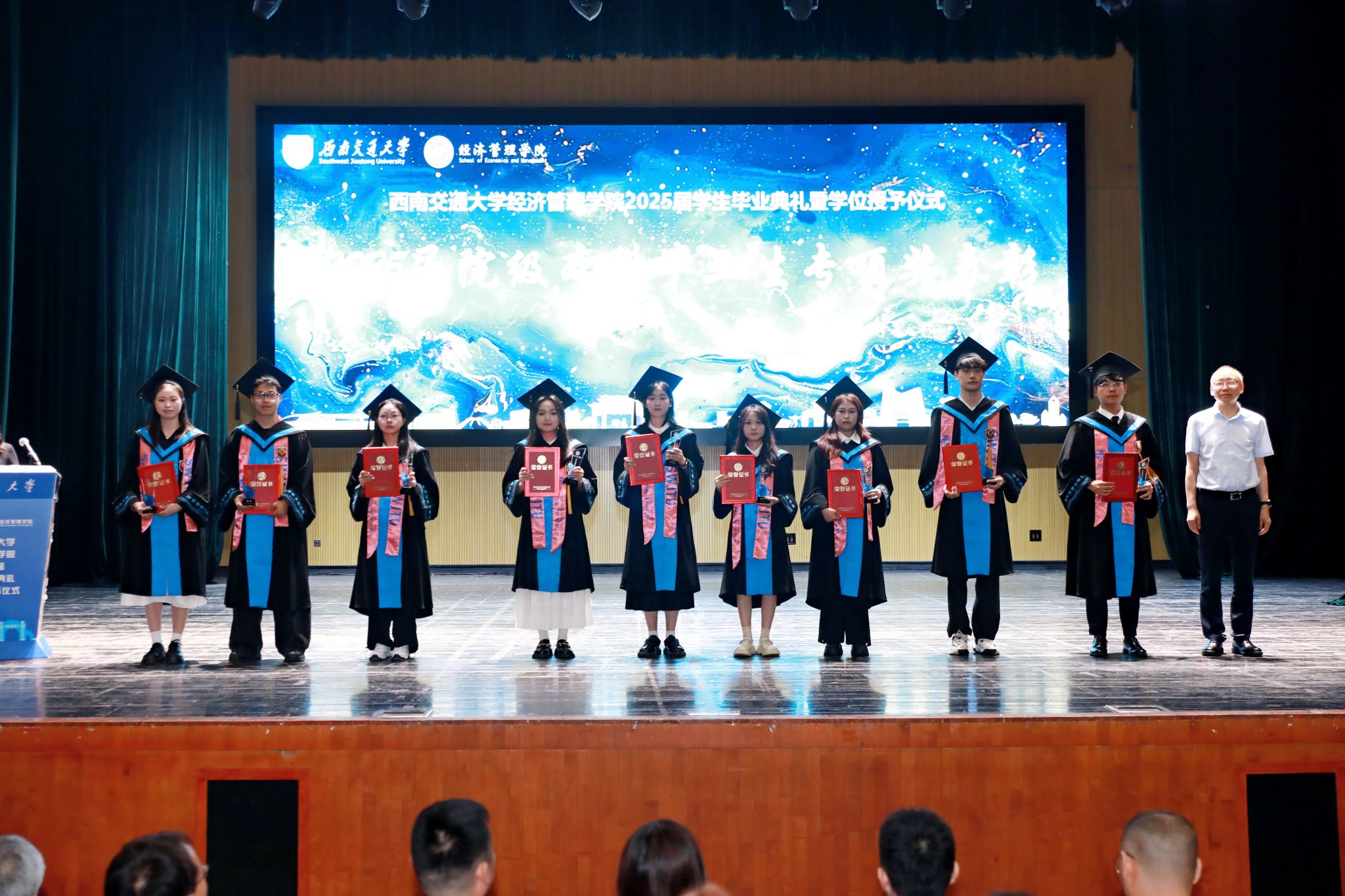 学院党委书记蒋佳宣读2025届本科生、2025届MBA毕业生院级荣誉获得者名单,学院副院长李良为获奖毕业生颁奖。院级获奖毕业生以勤勉为舟、以实干为桨,在专业学习、实践活动与集体建设中展现出卓越的综合素养。