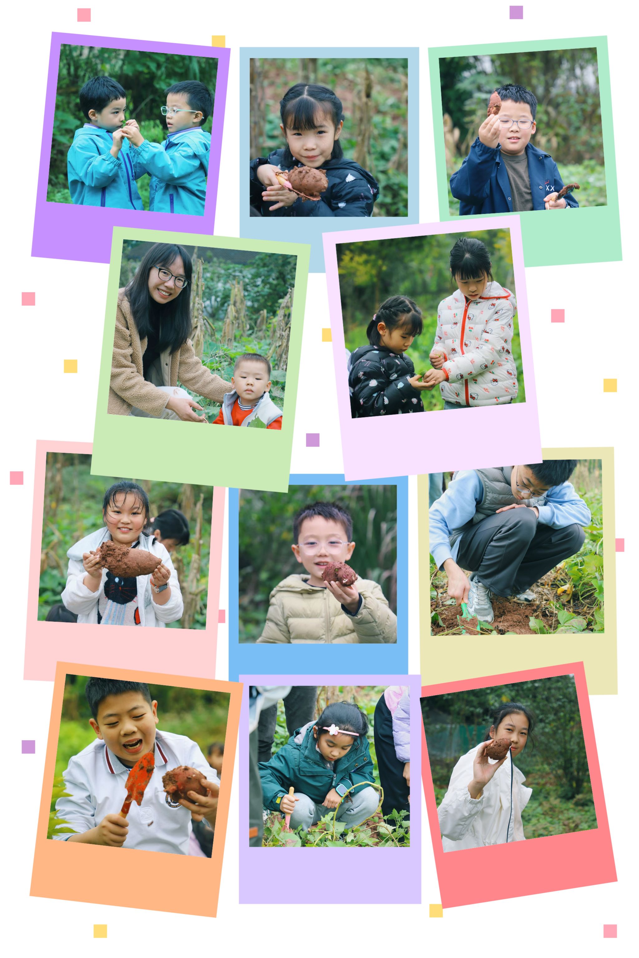 中午,教职工与孩子们共同品尝了农家特色午餐。随后,大家积极参与采摘活动,小朋友们走进田间地头,聆听园区老师讲解红薯的种植知识,亲手采摘触摸植物叶片、闻一闻香草和薄荷叶的味道,使用小铁铲挖掘红薯,亲身体验秋收农耕的乐趣与成就感。