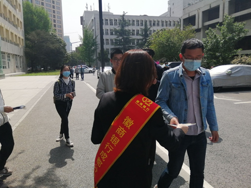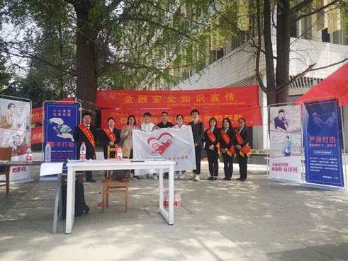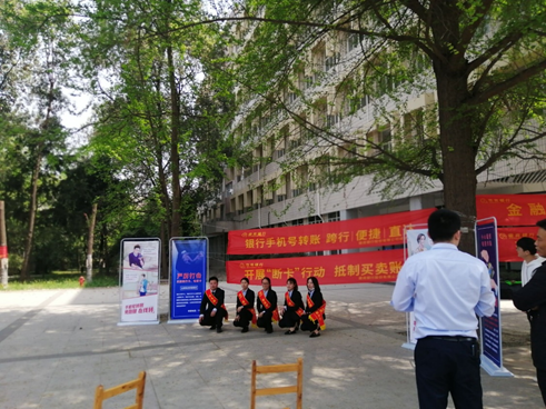 活动主要分为两部分,首先是经管青协人员张挂横幅,摆放宣传物资,在经管青协干部和徽商银行成都分行工作人员的引领下,干事们主动分发宣传折页,对活动进行宣传。