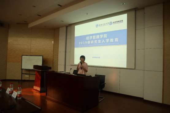 贾佳老师为大家开展新生入学教育专题讲座。首先,贾佳老师对新生进行安全教育,提醒同学们提高防骗意识,警惕校园贷。其次,贾老师和2019届研究生一起探讨活着的意义,鼓励同学们要充满斗志、努力向前。然后,告诫同学们在学术的道路上,一定要尊重学术道德,做一个谦虚和善良的人。最后,贾老师希望新生能尽快适应新的学习、生活环境,找到适合自己的生活方式,遵守校规校纪,顺利地度过未来的研究生生活。