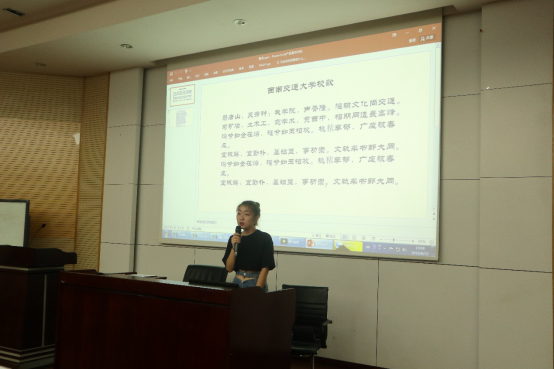 2019级研究生入学教育系列活动在九里校区信息楼0215教室举行,出席本次活动的有团委书记、学生工作组副组长贾佳老师,研究生辅导员戎尚和胡广翰老师,还有全体2019级研究生。本次活动主要包括新生入学教育专题讲座和学唱校歌及《我和我的祖国》两个环节。
