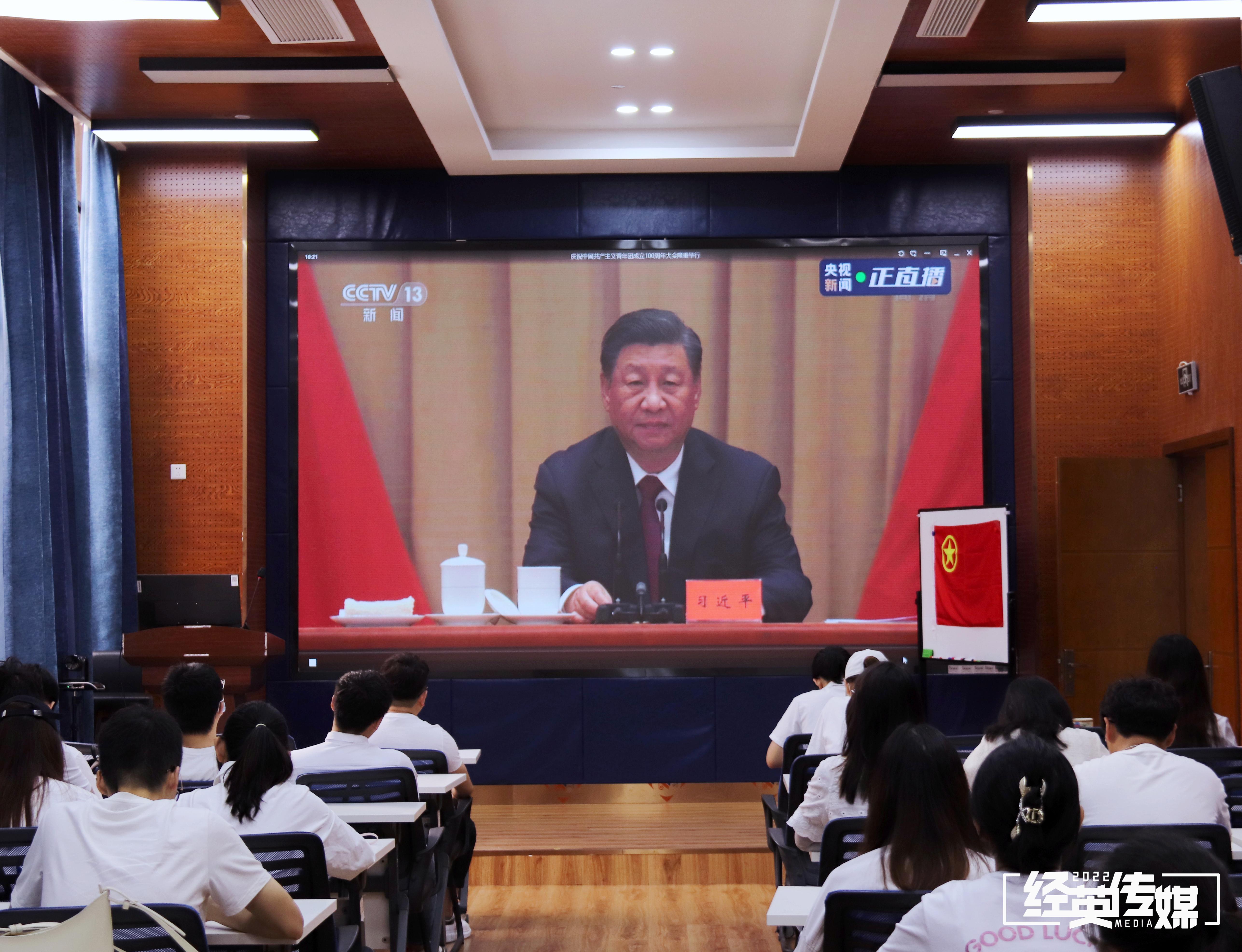 分会场师生认真聆听、学习。同时,同学们热情高涨,各年级未能参与集体观看的同学在寝室、图书馆、教学楼等各个地方观看直播,一起学习领悟习近平总书记重要讲话精神。