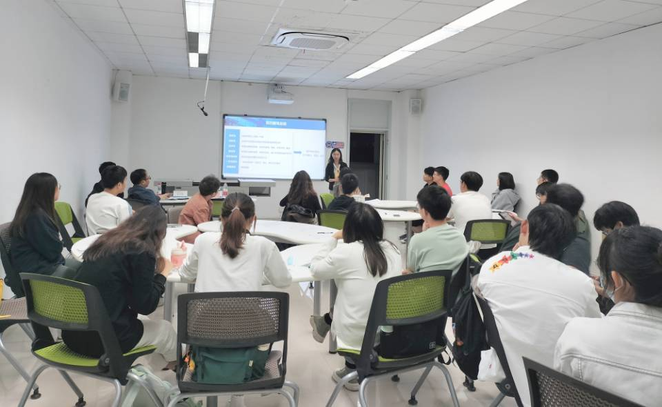 马琼老师首先提醒同学们尽早明确目标,大三同学需要明晰自己接下来的规划。紧接着,为了让大家进一步了解目前的就业市场,马琼老师针对毕业生的行业分布进行了简要分析,同时鼓励同学们:"经管学院各专业的岗位适配范围广泛,大家要开拓自己的视野,主动去问,敢往外冲,从而筛选出适合自己的意向岗位群。”