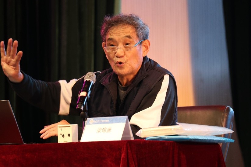 首先,梁锦唐通过大量的图片、文字资料,结合很多精彩的历史故事,从“我校的诞生及发展历程、我校优良校风、百年铸造的精魂”三个方面,为同学们介绍了色色啦