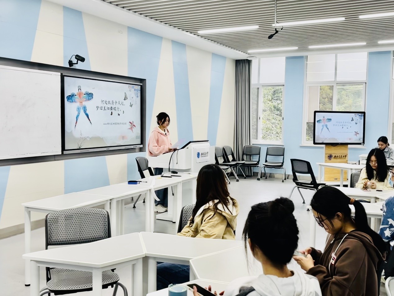 课程开始,主持人许慧敏先行讲授王泗风筝的由来、特色、手工技巧以及“王泗风筝”非遗传承人刘永旭先生对传统风筝手工艺进行的突破,使同学们能够更加充分地感受到传统手工艺中的工匠智慧。王泗风筝起源于清代光绪年间。2008年12月,王泗风筝节和王泗陈氏风筝制作技艺同时被纳入成都市第二批非物质文化遗产名录,王泗风筝的发展寄托着川西劳动人民本真的情感及华夏儿女对朴实文化的追求。王泗风筝不仅是中华民族的优秀民间手工工艺制作,也是中华传统文化的重要组成部分。它之所以能在历史的潮流中不断沉淀,彰显着其独特魅力,归因于其独特的民俗价值、审美价值、教育价值和经济价值。
