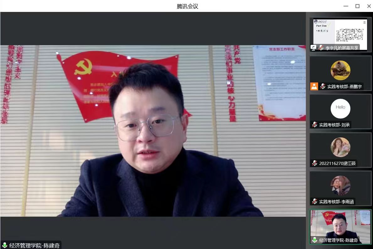 寒假“返家乡”调研社会实践安全培训暨动员大会在线上举行,学院团委副书记陈建奇、青年志愿者协会干部以及15支校、院级及专项队伍一起参加了大会。