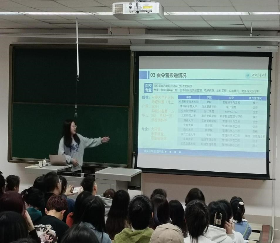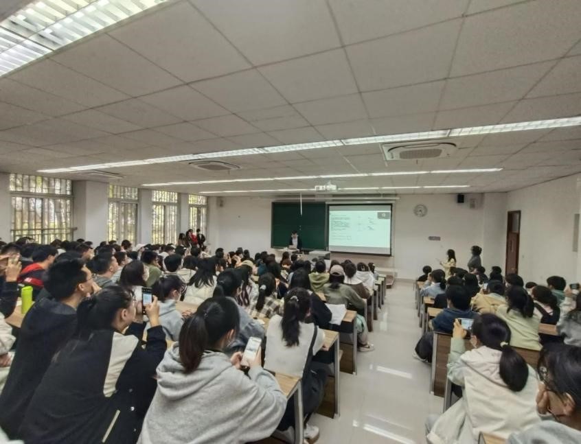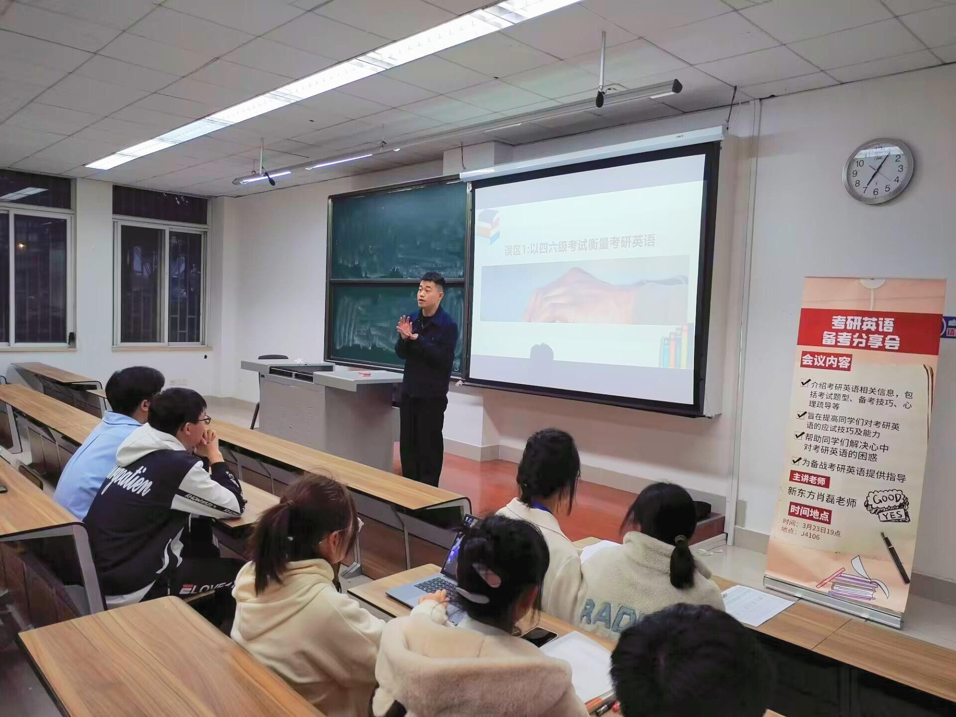 邀请了中公教育的梁萧老师开展考研择校择专业讲座。梁萧老师分析了如何选择适合的备考院校和专业,帮助同学们解决了心中对考研择校择专业的困惑。