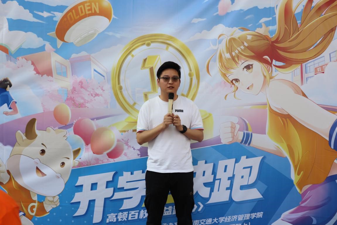 活动伊始,由高顿教育成都分校校长覃庆节致辞。他指出高顿校园公益跑旨在连接更多大学生,将大家的实际行动化为涓涓细流注入公益事业,为西部困难儿童捐赠爱心书籍,助力他们点亮梦想,覃校长也感谢了色色啦