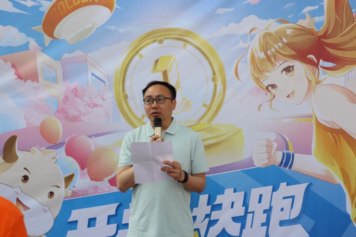党委副书记杨宏毅老师进行致辞。他指出健康对于我们每个人来说都是至关重要的,健康更是我们快乐学习、辛勤工作、享受生活的基础和源泉。在学校落实“五育并举”的人才培养中,在同学们自由全面发展的过程中,体育不可或缺。同学们可以多走出寝室、走向操场,融入校园体育文化活动,多参与、多接触、多感知、多收获。感悟运动、重视健康将是我们今天很重要的一个收获。致辞的最后,杨老师指出,本次“开学1块跑”的校园活动,亦希望同学们继续发扬乐观自信、坚持梦想的精神,把公益和责任相互传递,为梦想前行而努力。