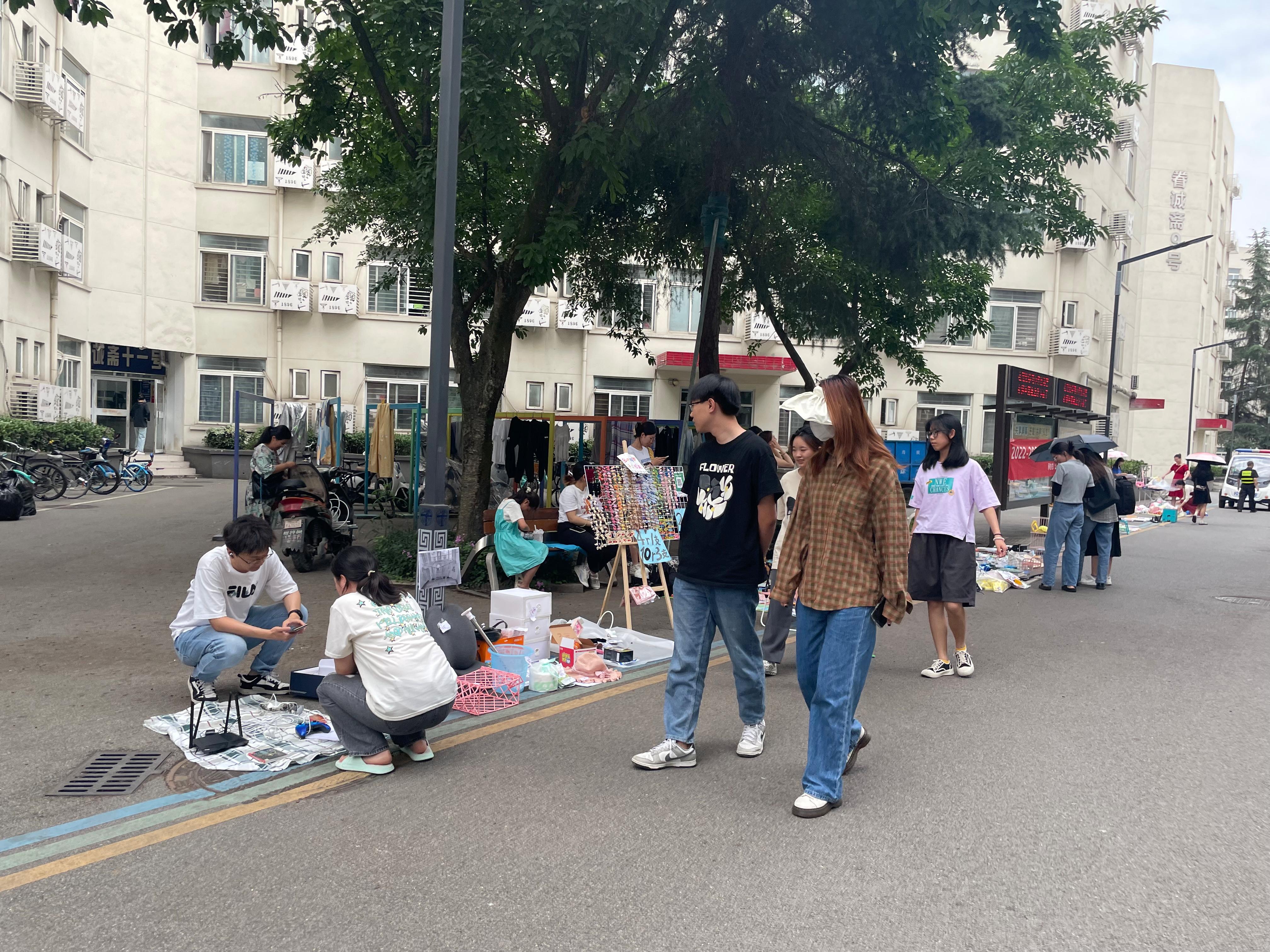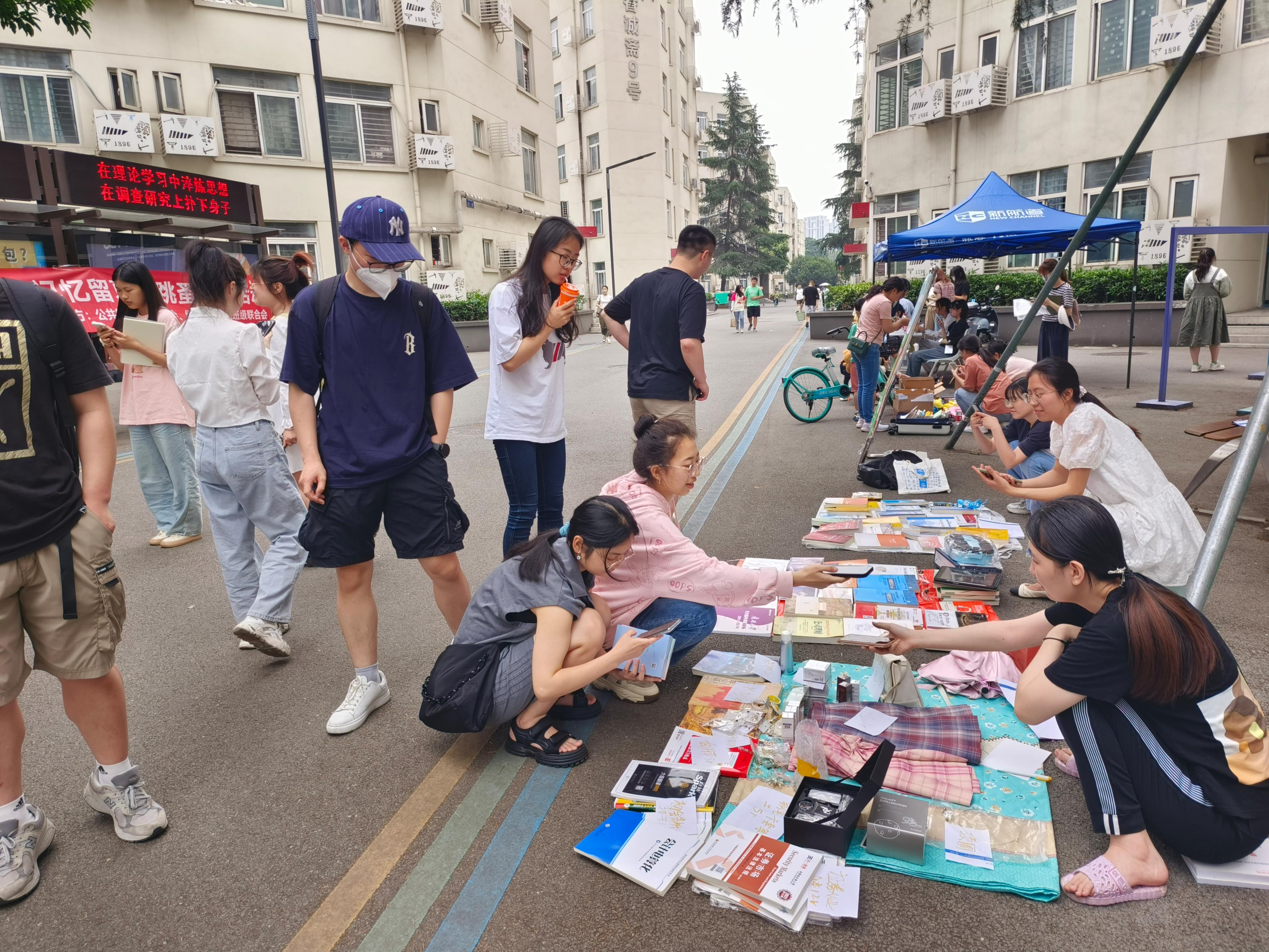 2023年5月28日,“记忆留夏”跳蚤市场活动于九里校区眷诚斋13栋楼下T字路口附近顺利开展。本次活动由色色啦
