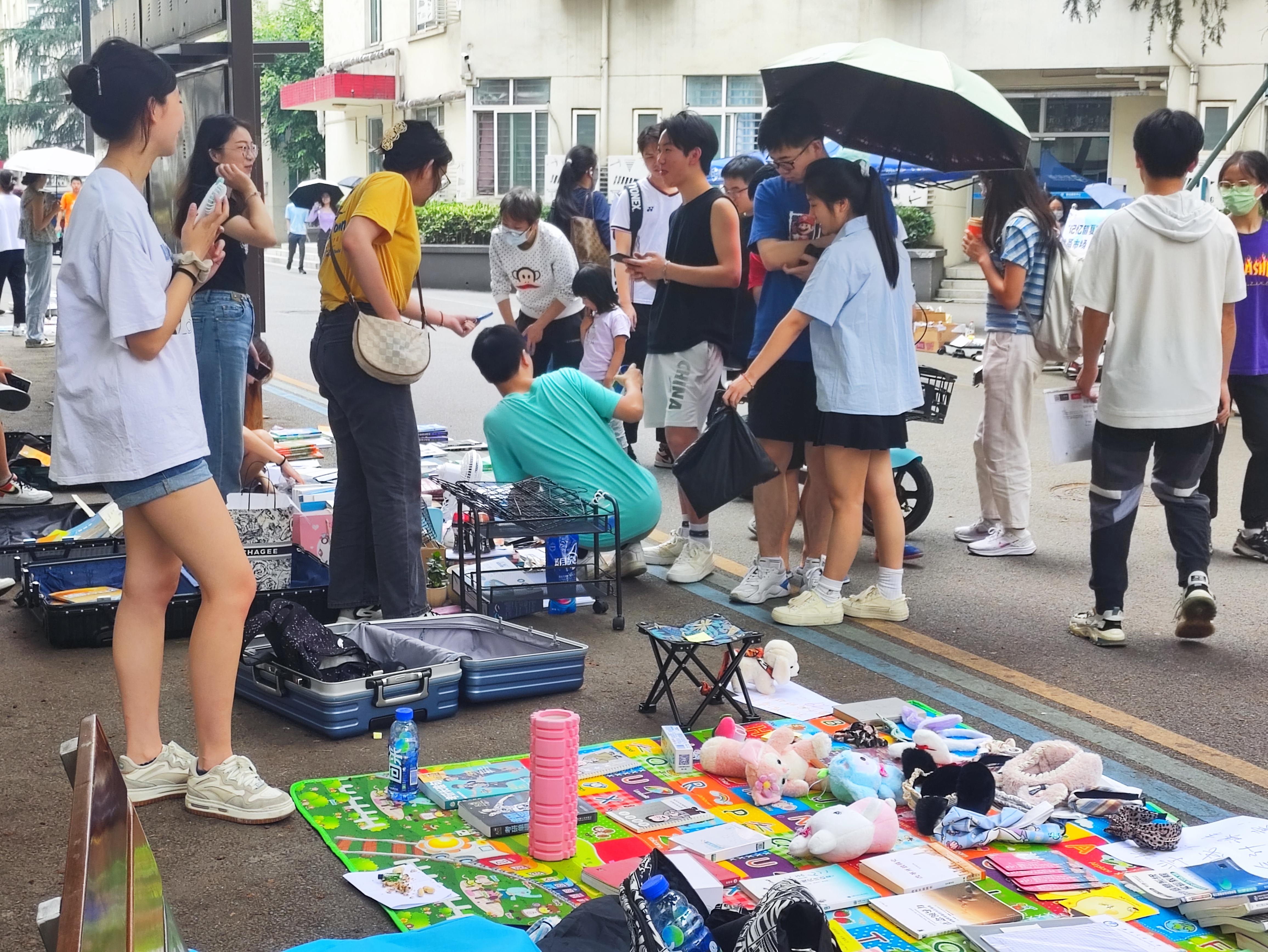 本次跳蚤市场活动采取卖家线上加入QQ群报名、线下摆摊交易的方式,让毕业生在现场布置摊位并售卖闲置物品。在本次活动中,即将毕业的学长学姐们整理出售了自己闲置的教材教辅、课外书籍、学习笔记、生活用品等。跳蚤市场熙熙攘攘,欢快有序,为九里校区的同学们提供了一个难得的线下物品交易平台。