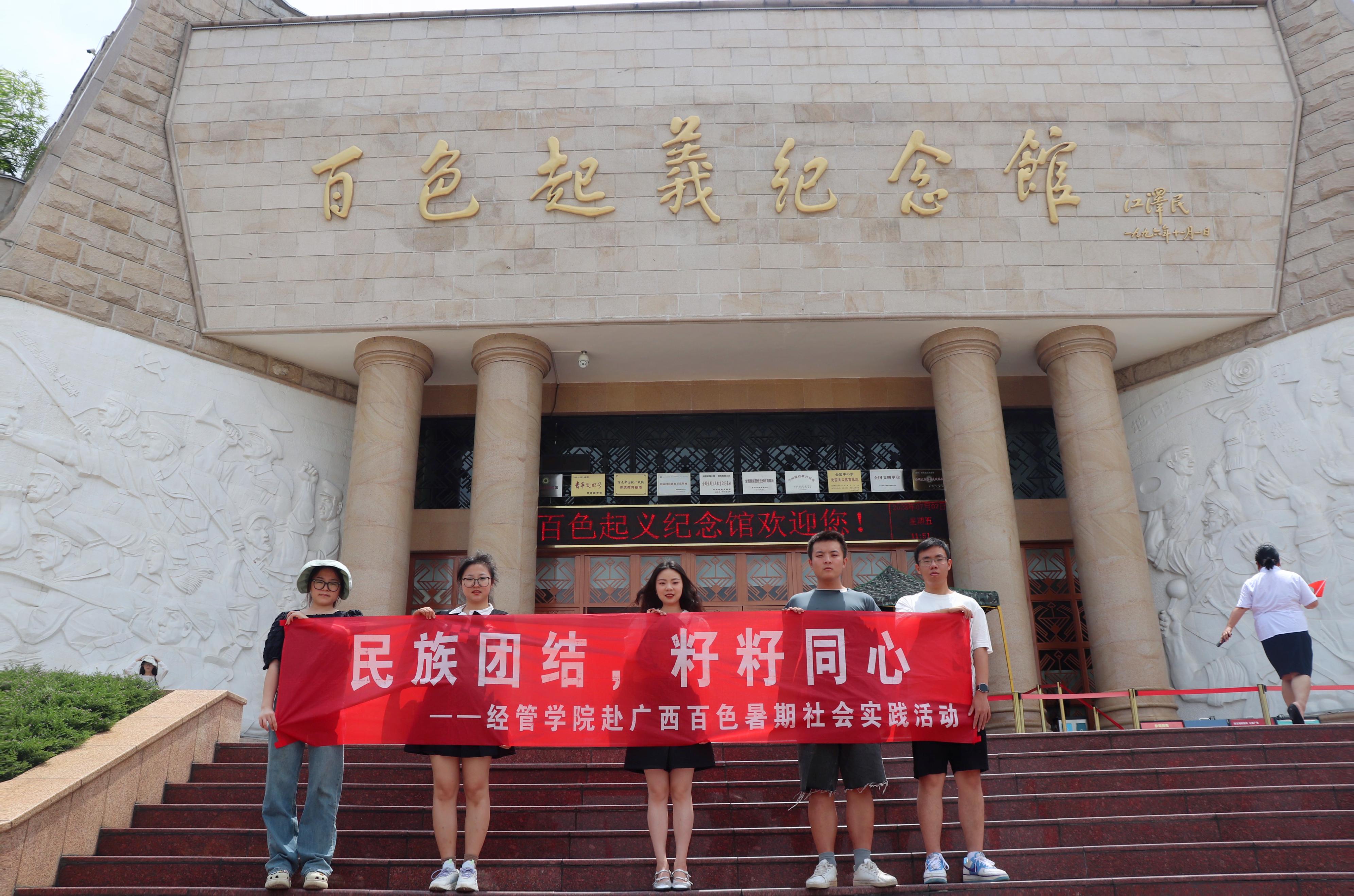7月7日,实践队来到位于百色市的百色起义纪念馆,队员们学习了解百色起义的历史和起义后革命根据地的民族政策。实践队通过抖音直播讲解的形式普及红色文化和民族团结文化,将民族团结故事趣味性地讲述出来,将民族文化创新性地传播出去。通过学习党在少数民族地区革命的历史,实践队员深化了民族团结情感,也体会到各族人民风雨同舟、和衷共济、百折不挠的精神。