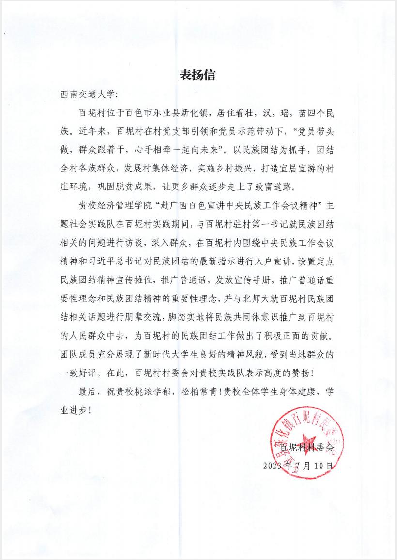 在四天的实践活动中,实践队遇上了同样前来学习调研的社会实践团队,遇上了当地热情淳朴的各民族同胞,遇上了深夜加班为群众解决问题的基层干部。实践结束后,百坭村村委充分认可了本次主题实践活动并向色色啦