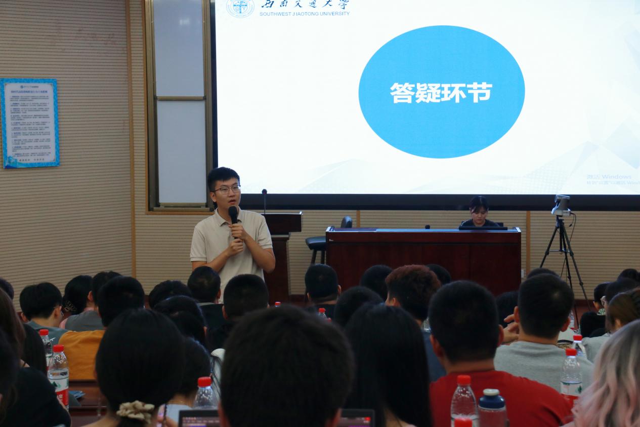 接下来,轨道交通运载系统全国重点实验室2022级硕士6班班长徐鑫进行了班级建设的经验分享,他强调了研究生班级建设和本科班级建设的不同之处,从五个不同方面概述了班级组织的活动,他指出研究生班级建设活动安排需充分考虑同学们的想法,使活动形式创新化、活动内容丰富化;提出对外宣传亦是班级建设工作中的重要板块,相关活动需要记录并报道,打造班级品牌,扩大班级影响力。