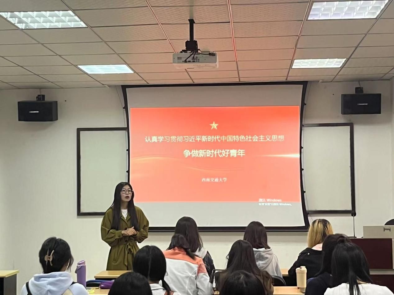 此外,学院团委书记贾佳也结合“思想旗帜”专题,为团员和青年上了一堂生动的团课。
