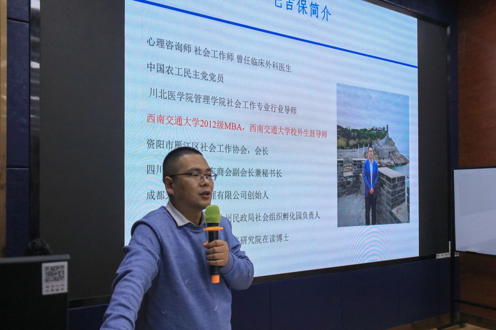 2012级MBA院友,任资阳市雁江区社会工作协会会长、成都芝鹤健康管理有限公司创始人、凉山彝族自治州民政局社会组织孵化园负责人,在职业生涯规划方面有着丰富的指导经验。