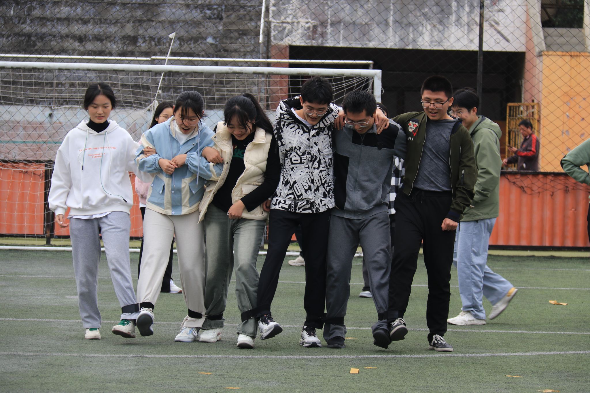 接下来是朋导赛。在开学之初,朋辈导师们不辞辛劳地为新生答疑解惑,协助大家迈出大学的第一步。在这次活动中,他们更是展现出与班级同学的高度默契,为大家带来了精彩的“六人七足”。