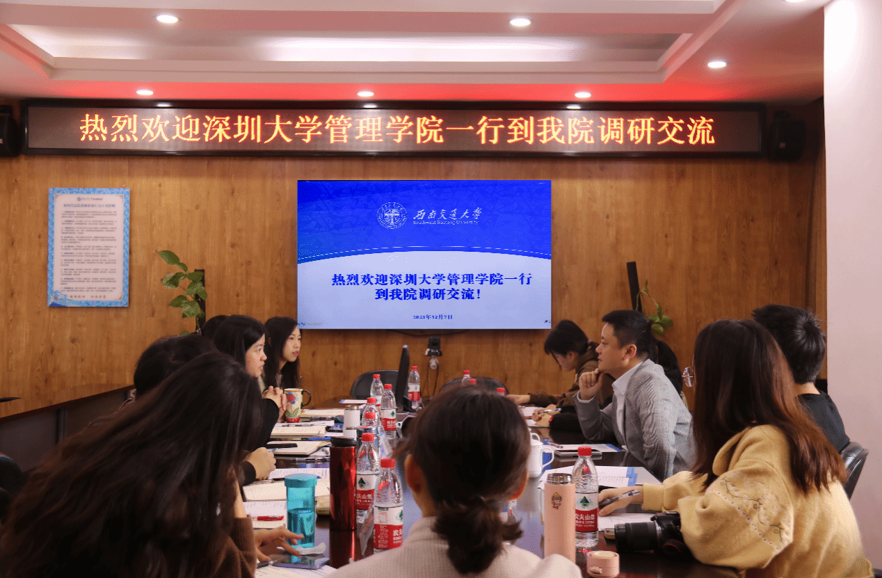 会议伊始,余小英对深圳大学管理学院一行的到来表示热烈欢迎,并简要对我校和我院的历史沿革和发展现状进行了介绍。随后双方就学工队伍建设经验、家校共建做法、创新创业工作开展、社会实践工作开展、“五育并举”建设经验等几个方面进行了交流和探讨。