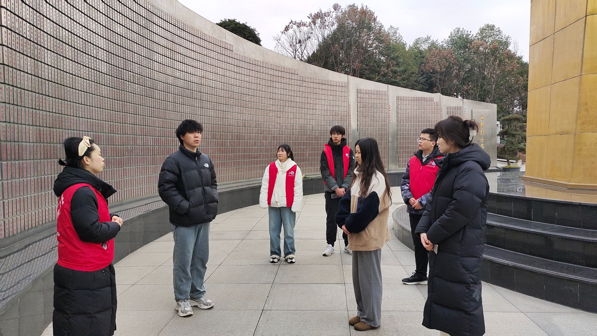 赴成都市烈士陵园调研走访主题实践队前往成都市烈士陵园开展活动。实践队走进成都市烈士陵园,开展了祭扫、除杂草、清扫落叶等实践活动,用实际行动表达哀思之情。沉甸甸的墓碑上记录着革命先烈们的奋斗事迹,大家凝视着那些字迹,内心充满着敬畏和感慨。随后队员们参观了悼念广场与展览馆中的革命历史与英雄事迹,并与陵园工作人员展开深入交流。在与成都市烈士陵园工作人员的交流过程中,实践队员们深刻认识到红色血脉代代相传、红色江山永不变色的重要意义。