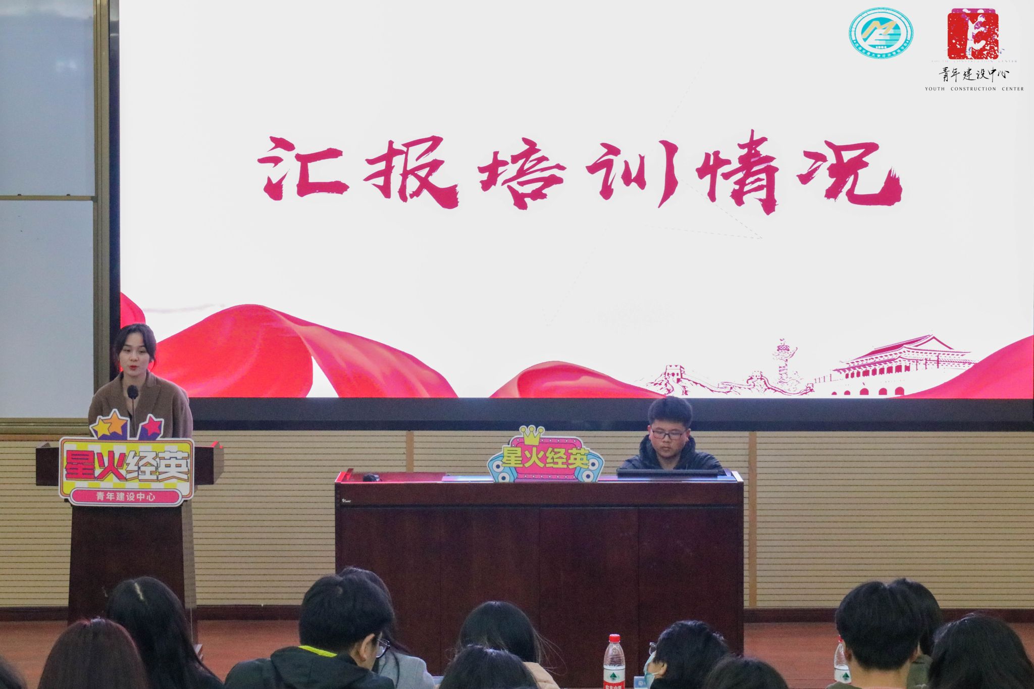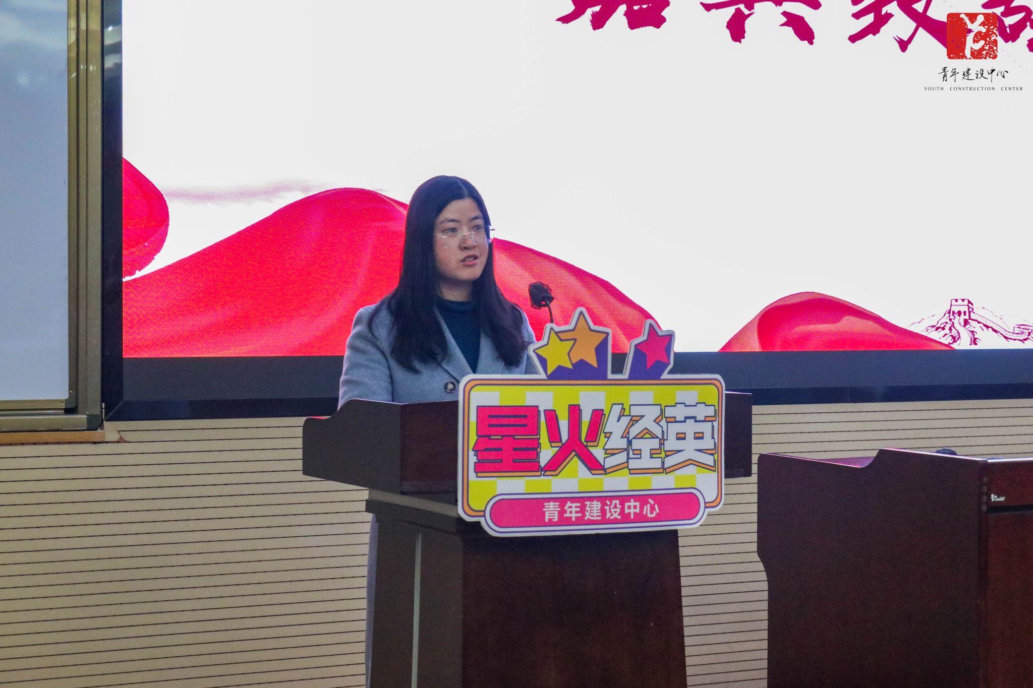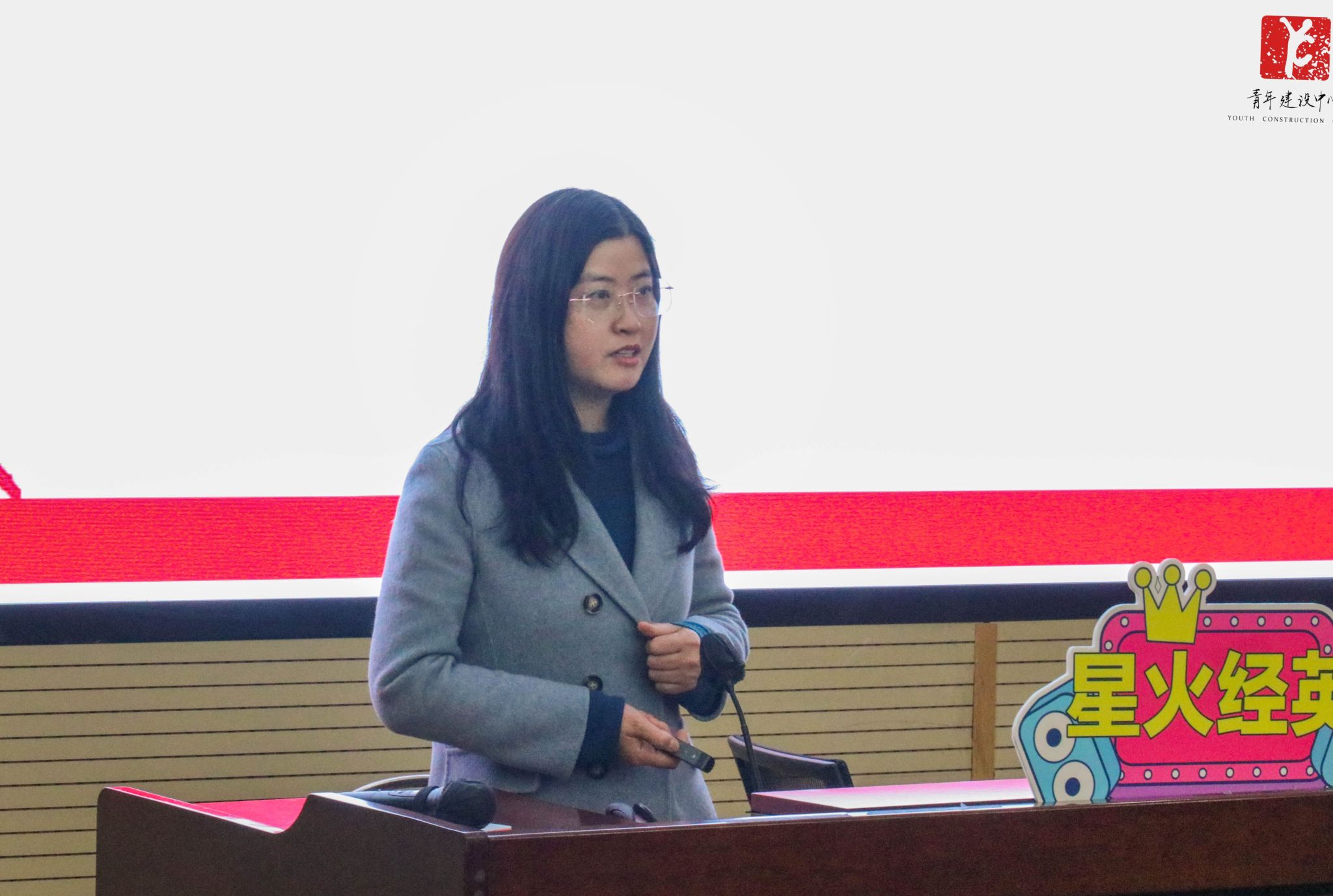党委副书记余小英为本学期“星火经英”计划团干部培训开班仪式致辞,余小英老师希望参训团干部能在学习生活中博学笃志、读书立学,实事求是、躬行实践,团结互助,和合共进,充分发挥模范、带头作用。青年建设中心指导老师钟文婷对上一学期“星火经英”计划的开展情况进行总结与汇报。