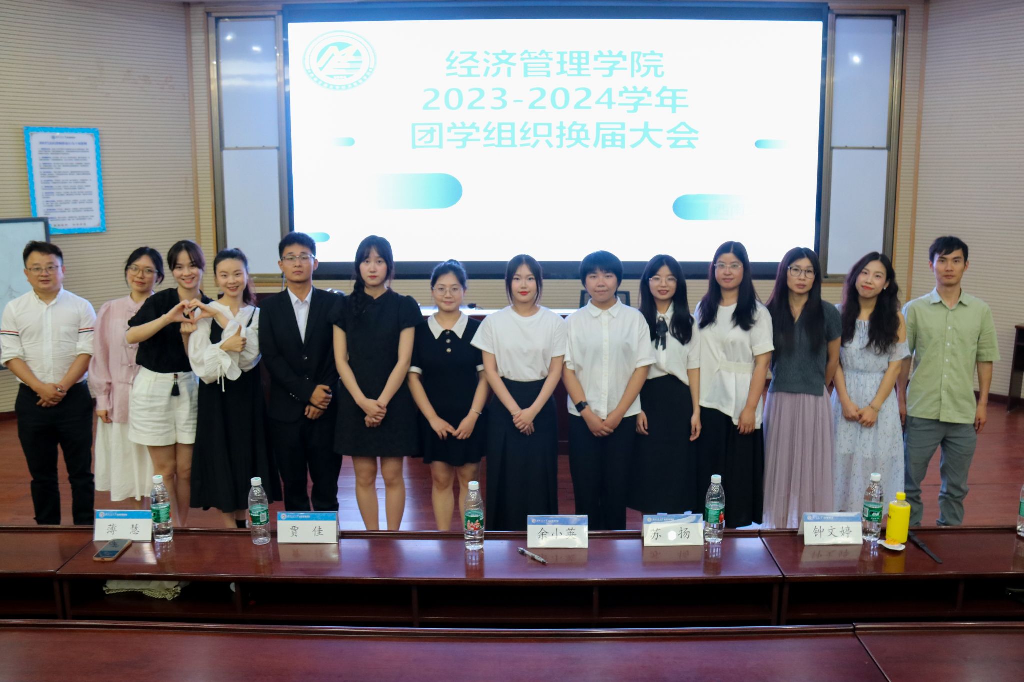党委副书记余小英,分团委书记贾佳,分团委副书记、青年志愿者协会指导老师陈建奇,分团委副书记、学生会指导老师苏扬,经英传媒中心原指导老师薄慧,青年建设中心指导老师钟文婷,班级联合会指导老师张先凌,创新创业中心指导老师尹玉萌。