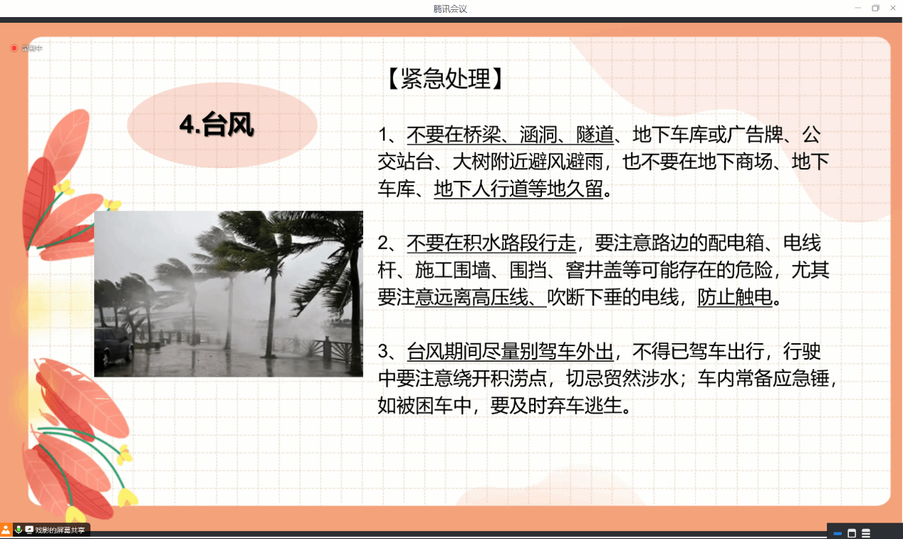 青年志愿者协会实践考核部的干部详细地为27支队伍讲解“三下乡”实践要求,包括活动介绍、安全须知、报账流程、投稿环节、风采展示和提问环节等方面内容。其中特别强调各队伍成员要严格遵循制度纪律,随时关注气象变化,注意出行安全,远离危险区域,保持通讯畅通,增强救护能力,让大家在保障安全的前提下更好地开展各项实践活动,并为大家了列举了常见的极端天气和自然灾害的预防措施和紧急处理方式。