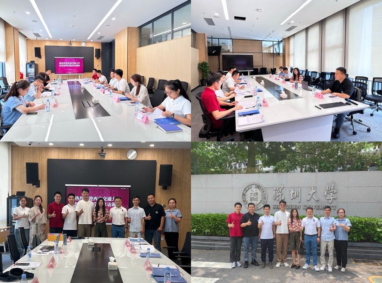 7月4日上午,调研团赴深圳大学就学生工作、团委工作、创新创业教育、就业工作等多方面展开深入学习和交流。会议中,深圳大学管理学院党委副书记腾飞、学工办主任张鹏、团委书记马大鹏、学生会指导老师谢杨慧等人在交流会上就阳光跑团、特色美育活动等开展情况和遇到的问题为我院老师进行了梳理。此外,双方还探讨了如何在课程之外开展专业特色活动和培养学生骨干。