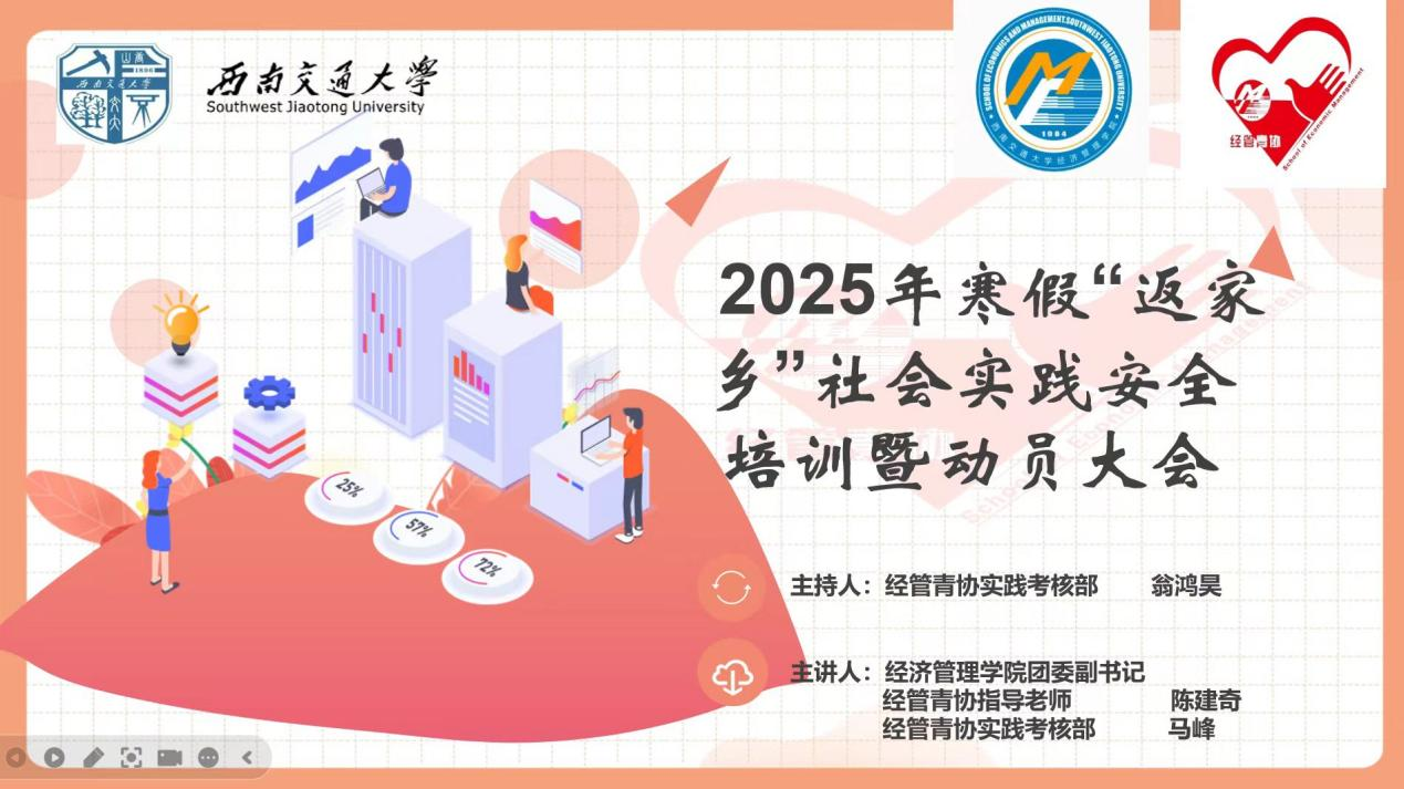 此次寒假“返家乡”社会实践安全培训暨动员大会,强调了实践队伍出行要求、安全管理规定、应急救援措施、总结提交要求等内容,激发了同学们深入基层开展社会实践的热情,为寒假“返家乡”社会实践活动的顺利开展奠定了坚实的基础。满怀激情的交大学子将走出校园,踏入社会,展现出青年大学生的朝气与活力,肩负起大学生的责任与担当,以实际行动践行社会责任,为家乡、为社会贡献自己的力量,收获宝贵的经验,提升自己的综合素质,成为更加优秀的青年人才,在实践中创造美好未来,书写精彩的人生篇章。