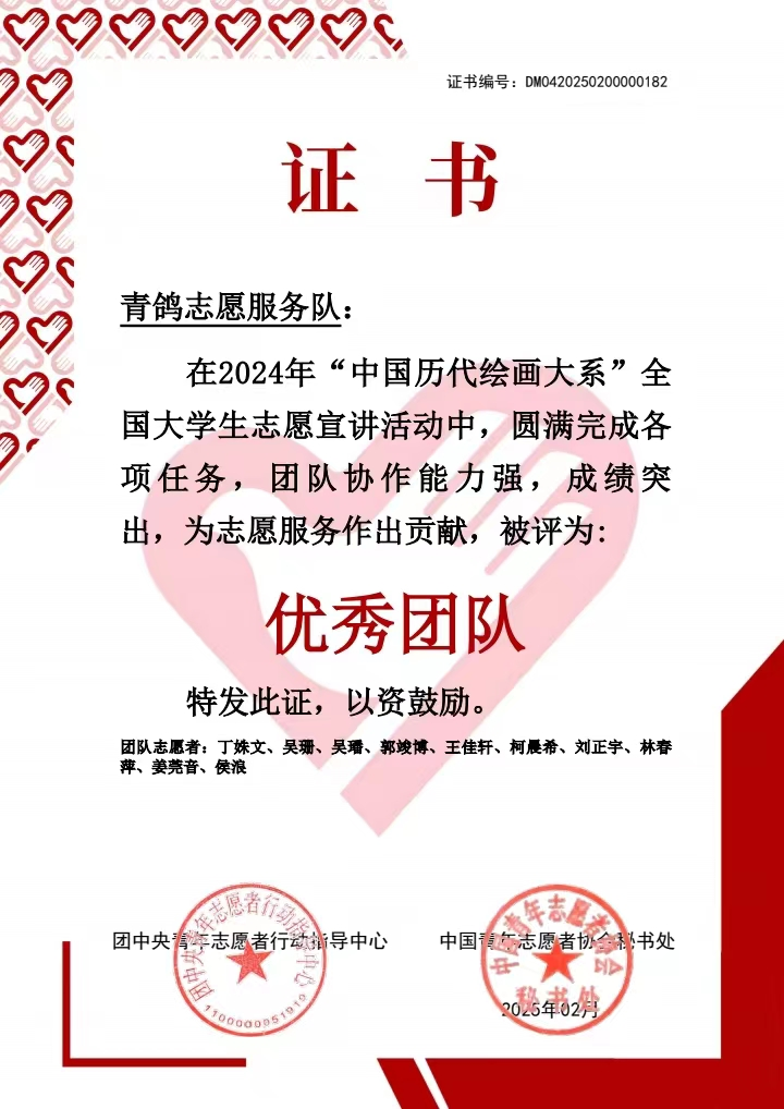 为深入学习贯彻习近平文化思想及党的二十大精神,积极响应“强国复兴有我”群众性主题宣传教育活动的相关要求,促进中华优秀传统文化的传承发展与国际交流,团中央青年志愿者行动指导中心、教育部中外语言交流合作中心、中国外文局文化传播中心、浙江大学与中国文物报联合开展了2024年“中国历代绘画大系”全国大学生志愿宣讲活动。近日,在宣讲服务团评选活动中,色色啦