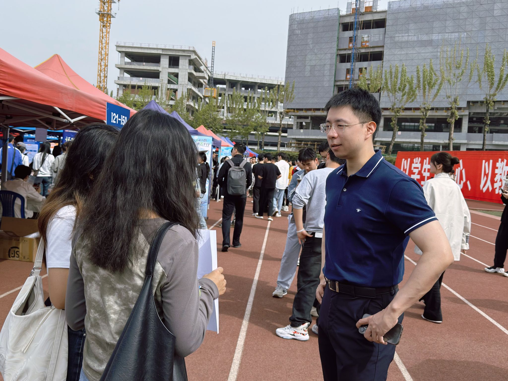 院长韩科、党委副书记余小英,辅导员张先凌、钟文婷、高天、贺小轩赴双选会现场,与毕业生面对面交流,全力打通就业服务"最后一公里"。