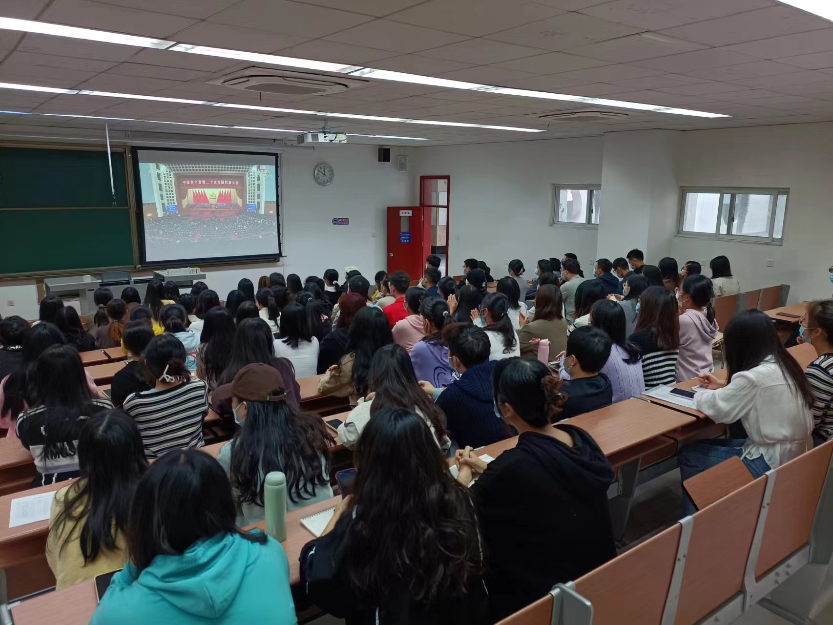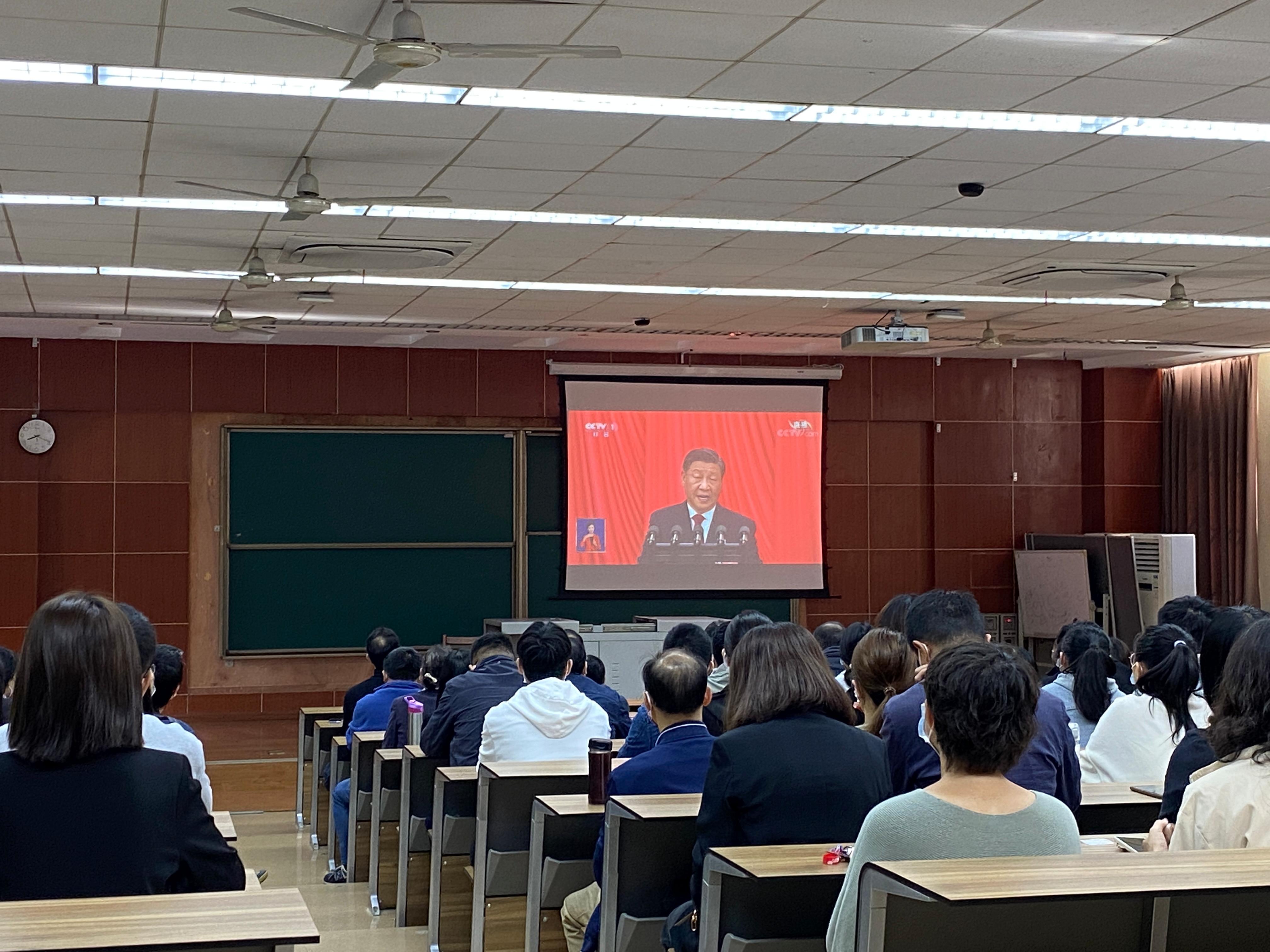 党委积极组织师生收听收看党的二十大开幕,以热烈、浓厚的氛围迎接党的二十大胜利召开。由于疫情未能参加集中收听收看的部分师生也在家中通过手机、电视、电脑等方式收看党的二十大开幕直播盛况,认真聆听习近平总书记鼓舞人心的报告。师生们纷纷表示很荣幸参与这次党的二十大开幕的观看,感到激动人心、热血澎湃、时不我待,将不负党的号召在新时代不懈奋斗,建功立业。