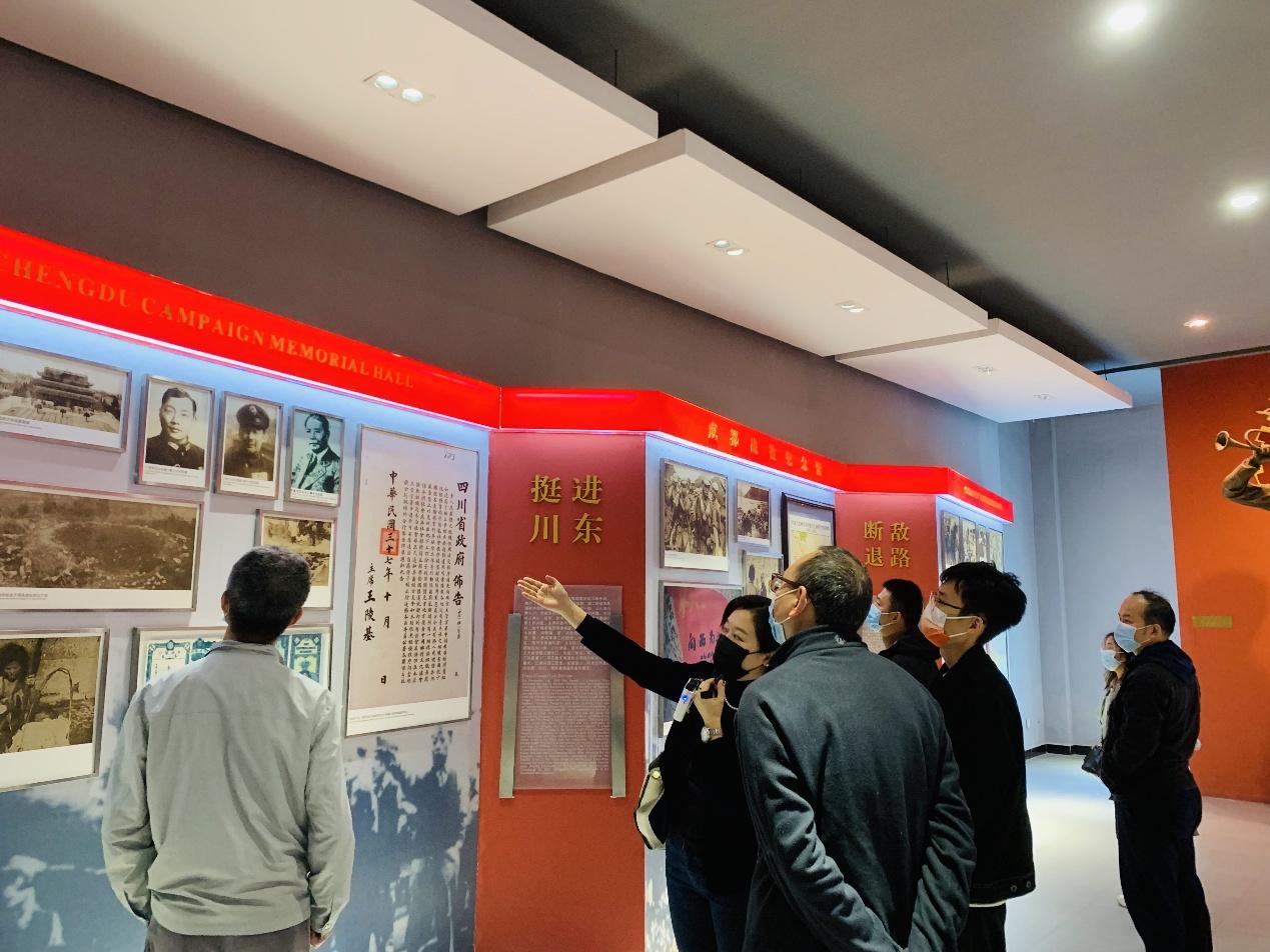 随后,各位老师带着无限的敬仰之情,移步成都战役纪念馆。馆内用文物、图片、书籍等不同载体,再现人民解放军征战西南、决战川西、解放成都的战斗历程。纪念馆4个展厅所串联的不同的革命战斗故事,和纪念馆具有年代感和充满历史沉淀的环境,使得各位老师进一步了解了党的艰苦抗战史。