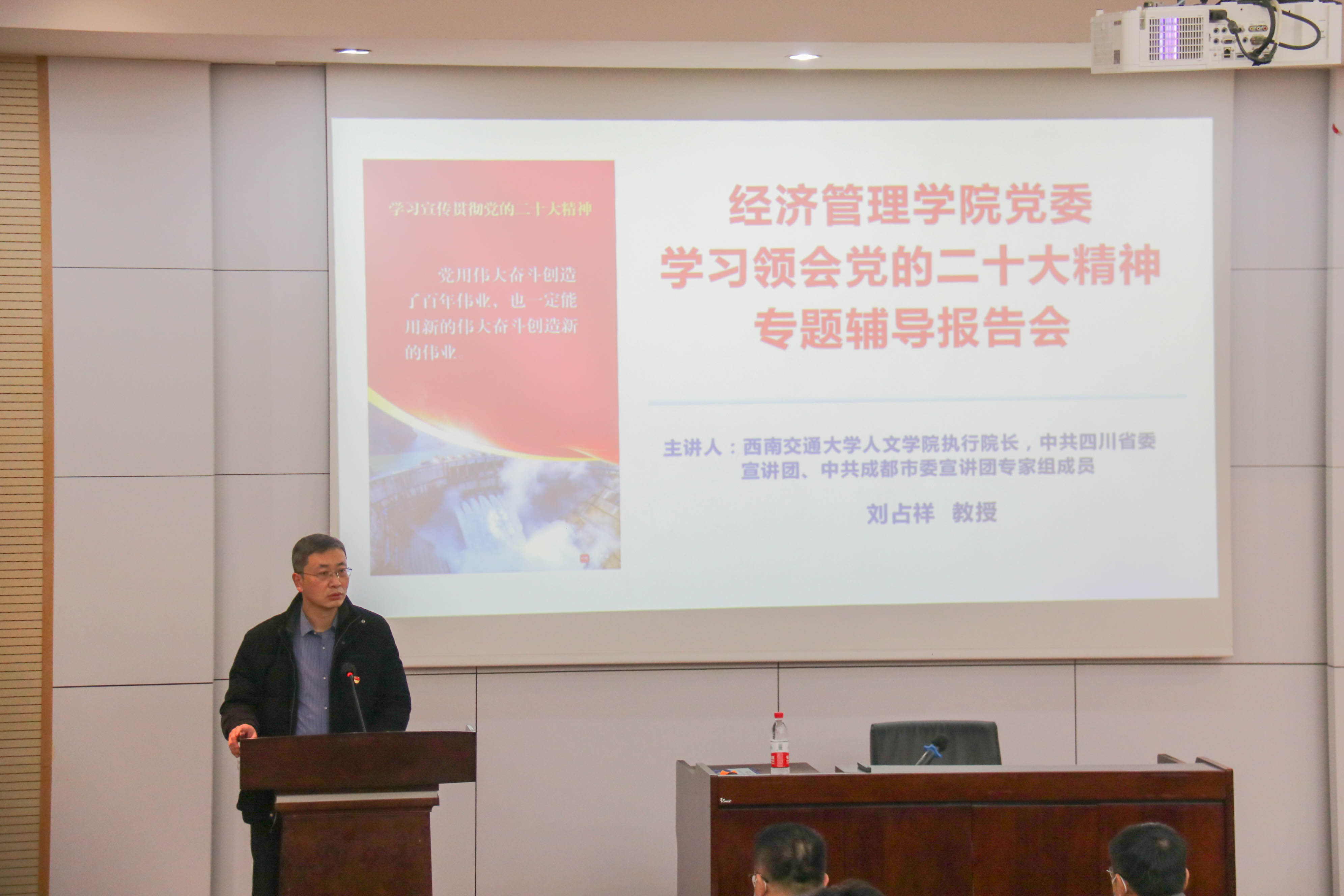 宣讲团专家组成员刘占祥教授作了题为“自信自强、守正创新、踔厉奋发、勇毅前行——深入学习贯彻党的二十大精神”的专题辅导报告,学院党政领导班子、师生各党支部委员、党外知识分子、机关工作人员共100余人参加了报告会。报告会由学院党委书记王斌主持。