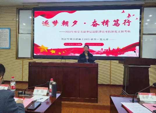 党委2023年度党支部书记述职评议考核和党支部考核会议在九里校区零号楼0204教室举行。学院领导班子成员、党委委员、专职组织员以及师生各党支部书记参加并完成了现场考核评分,会议由学院党委书记郭强主持。