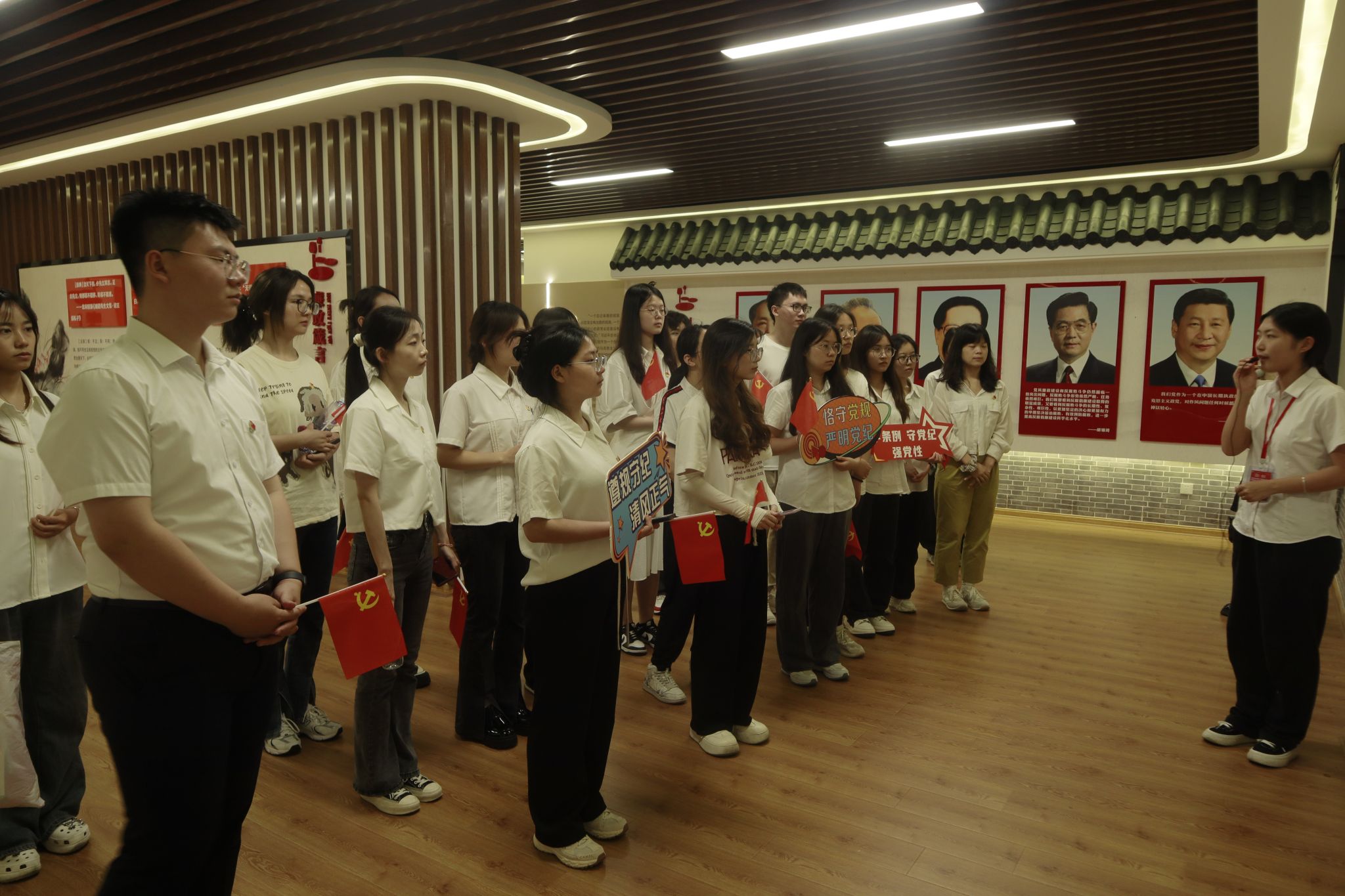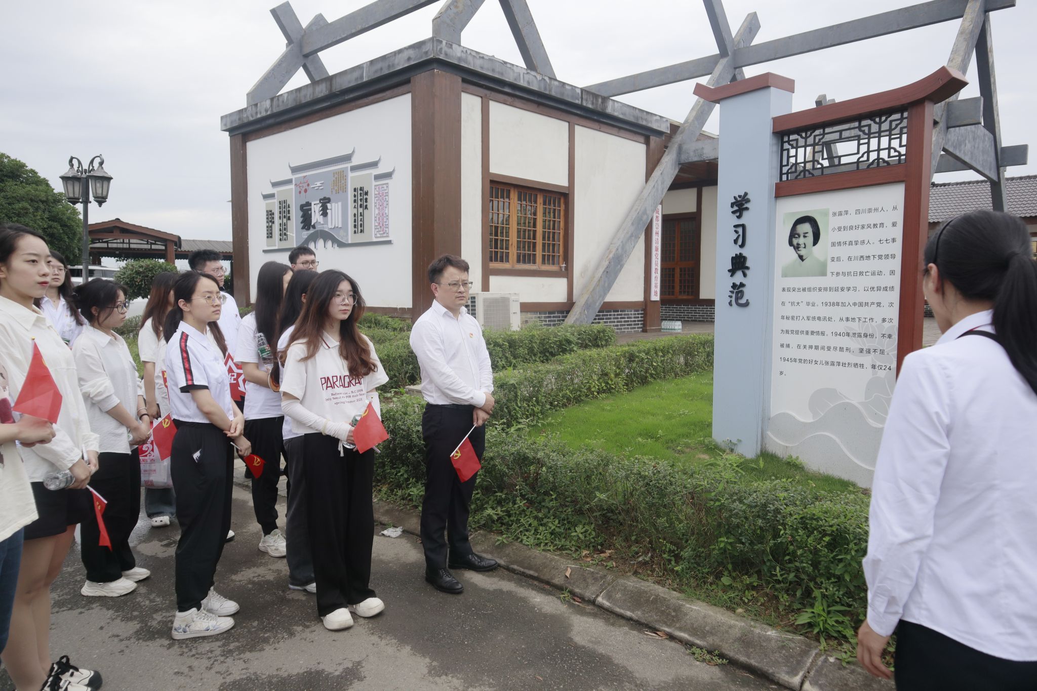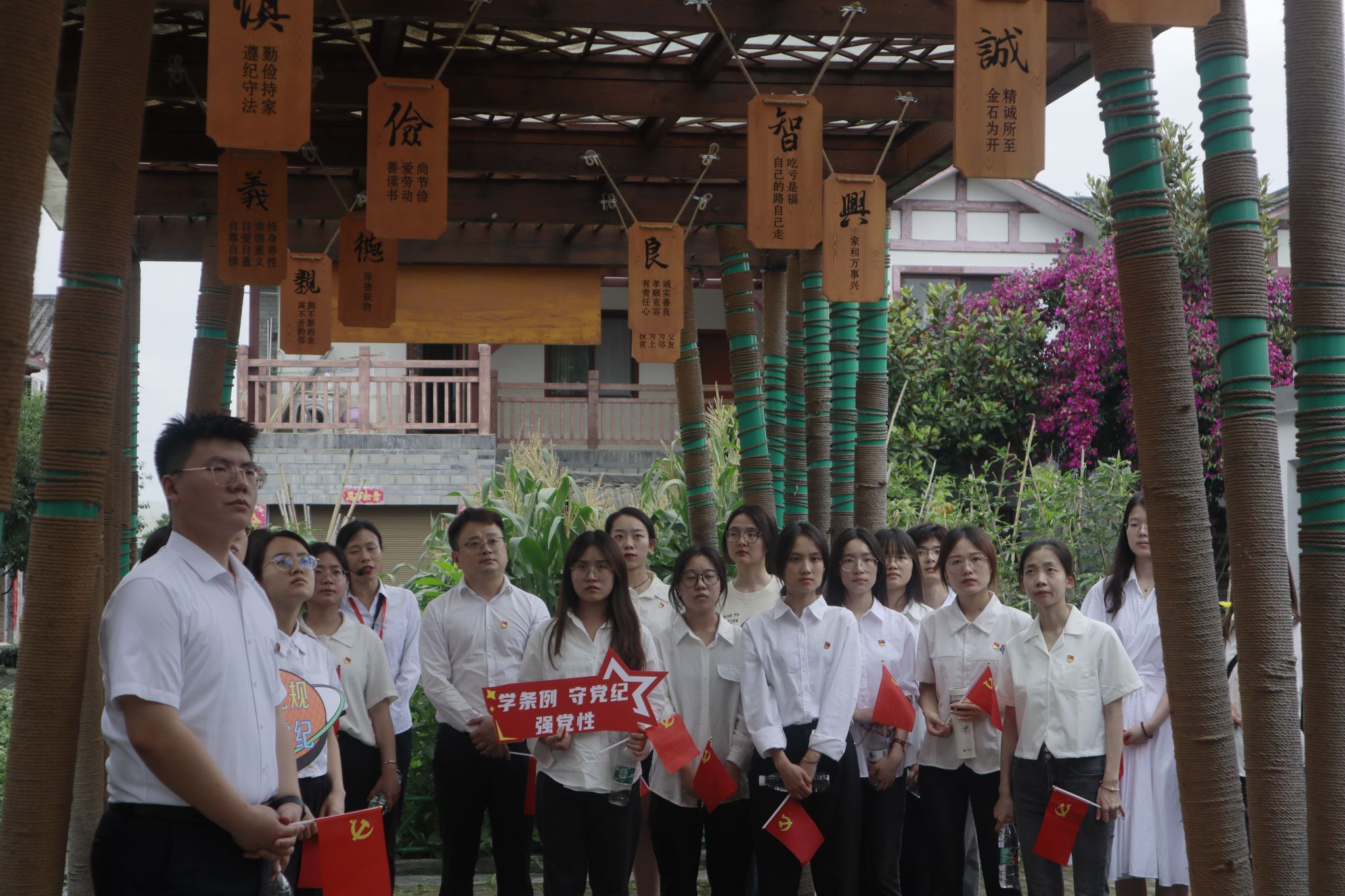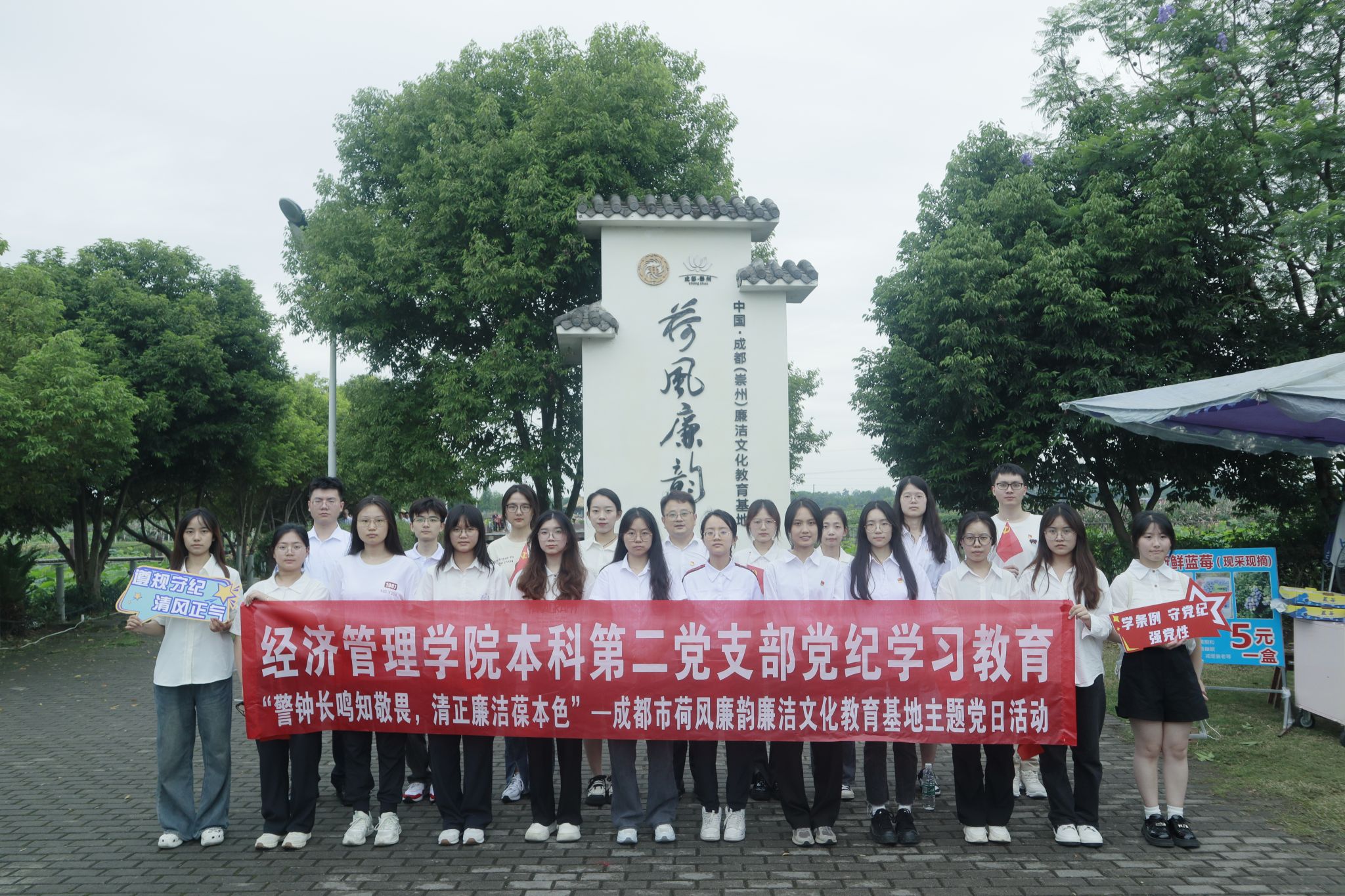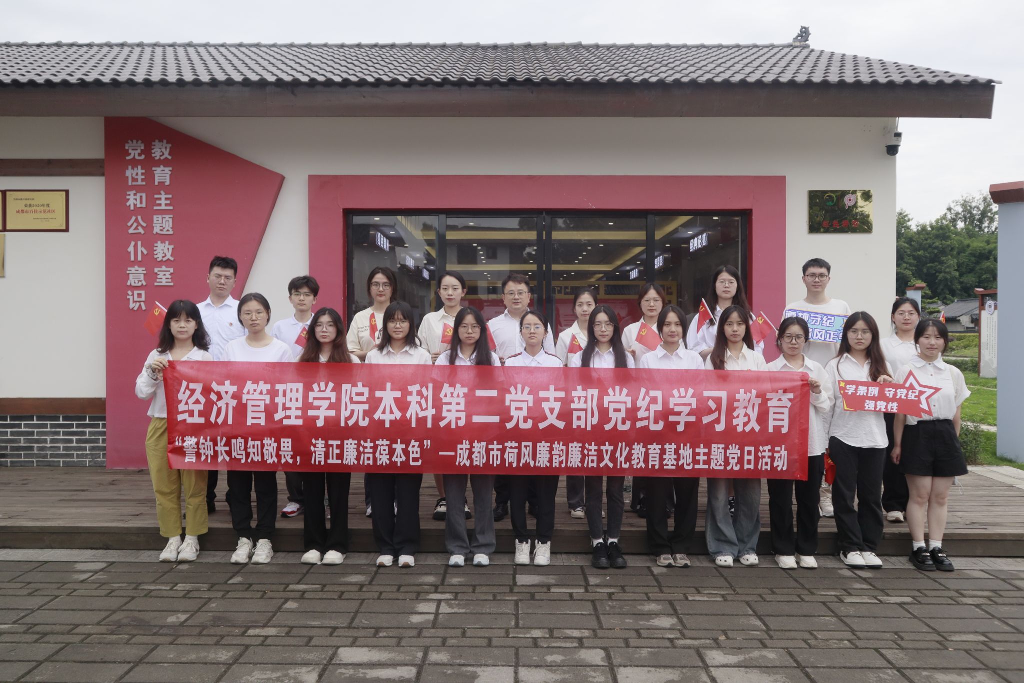 本科第二党支部22名党员、积极分子在党支部书记陈建奇带领下,前往位于四川省崇州市隆兴镇的“荷风廉韵”廉洁文化教育基地,实地开展党纪学习教育——“警钟长鸣知敬畏,清正廉洁葆本色”主题党日活动。