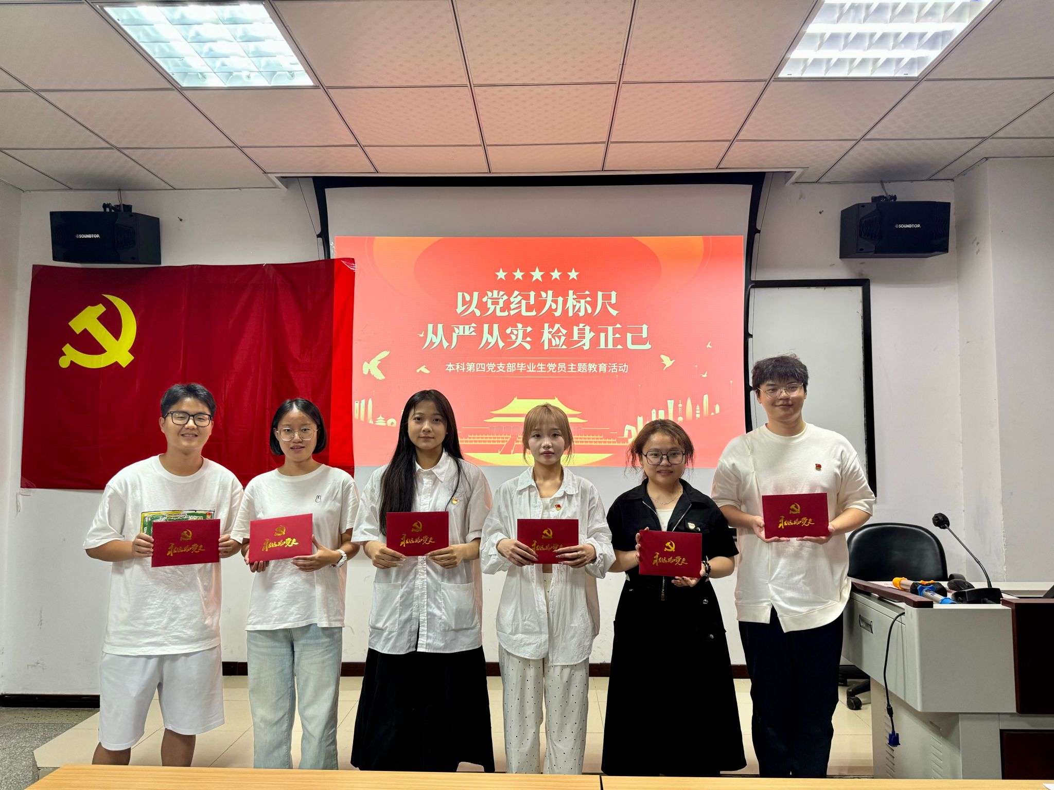 本科第四党支部在J0304教室开展支部书记讲党课。支部书记张先凌从党史回顾党纪建设,通过党的建立和发展光辉历程中关于党的纪律建设相关内容,强调了纪律严明是党的优良传统和政治优势,号召支部全体同志严守党纪,不忘初心,牢记使命。