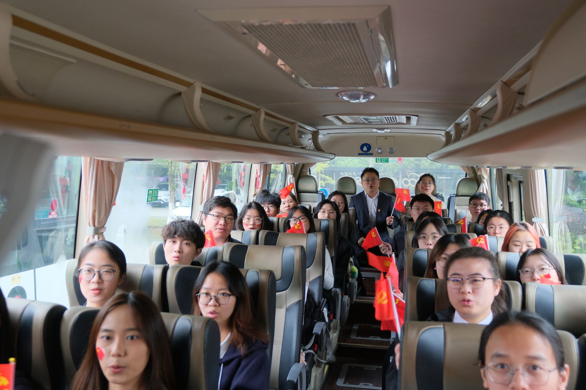“赤色印记,永恒篇章”。支部成员面颊上贴着红旗贴纸,怀揣着对革命先辈的敬仰之情,共同踏上了前往建川博物馆的征程。途中,《少年》的旋律响起,大家以坚定的歌声表达新时代青年的理想与追求,展现出青春活力、奋发向上的精神面貌。当《没有中国共产党就没有新中国》奏响,大家挥舞手中的小红旗,齐声高歌,表达了对国家繁荣昌盛的自豪和对党领导核心地位的一致认同与维护。
