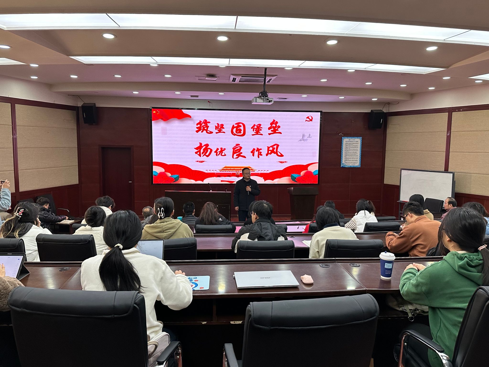 党委在零号楼J0228教室开展党委书记讲党课活动,本次专题党课由学院党委书记郭强主讲,学院党委副书记晏理斌、师生党支部委员和党员代表近40人参加了本次党课。