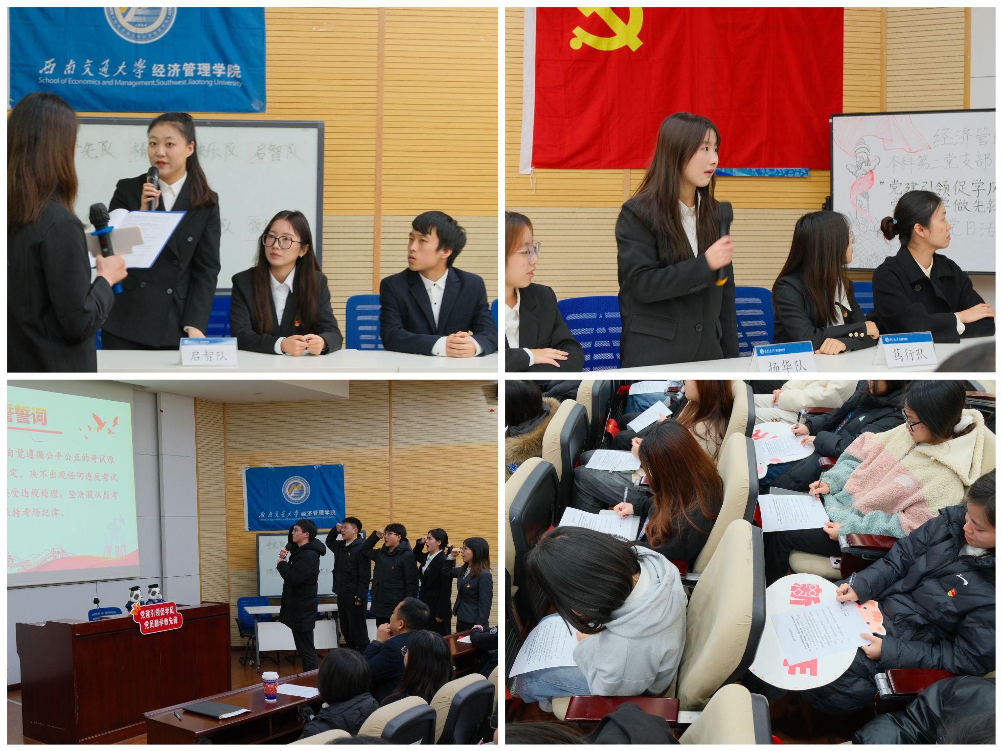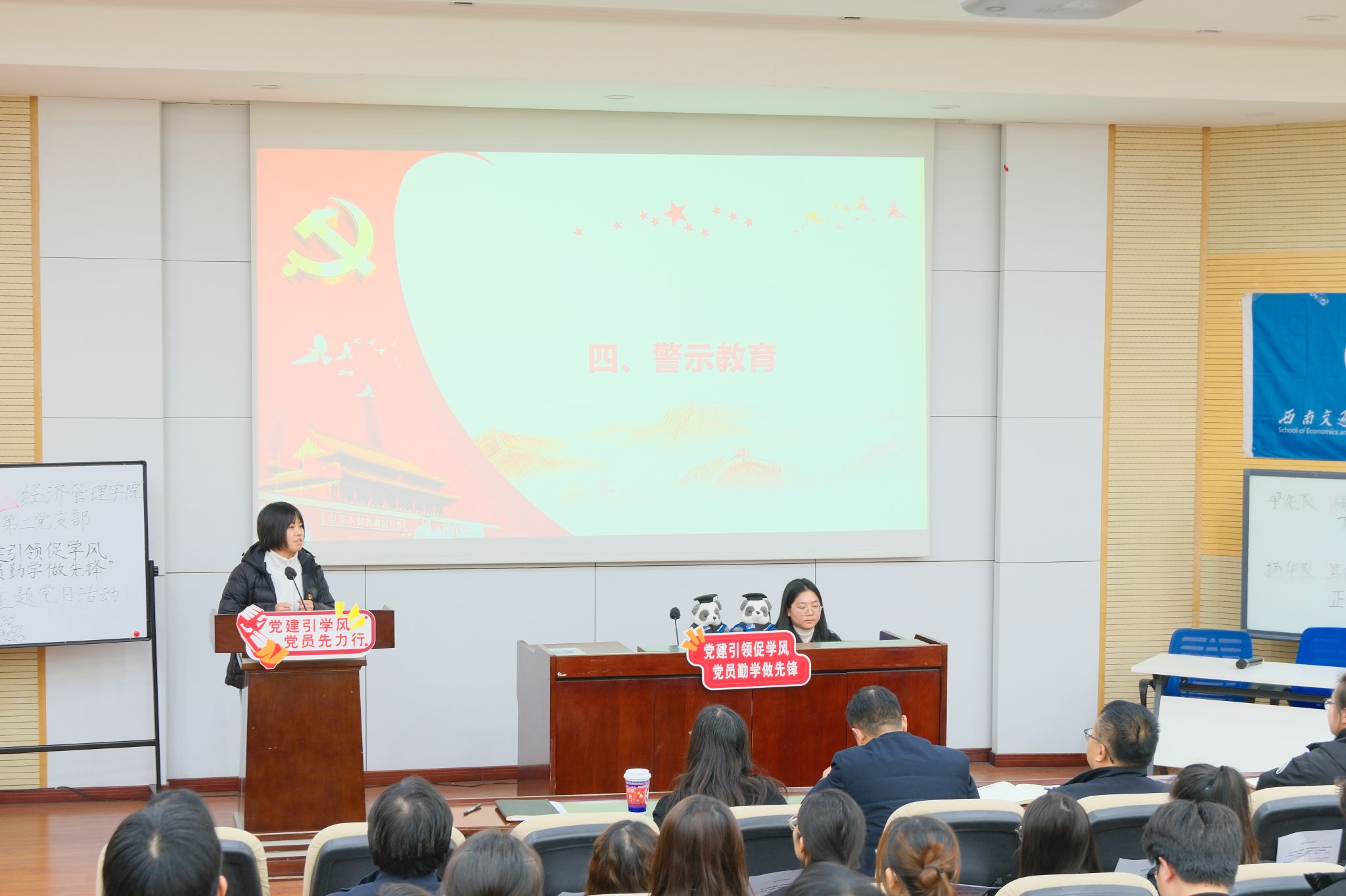 随后,支部党员杜齐阳和杨雅舒进行经验分享。杜齐阳同志介绍了部分课程的学习方法和考试注意事项。杨雅舒同志则聚焦于竞赛、科研等方面,为大家提供宝贵的信息和建议。