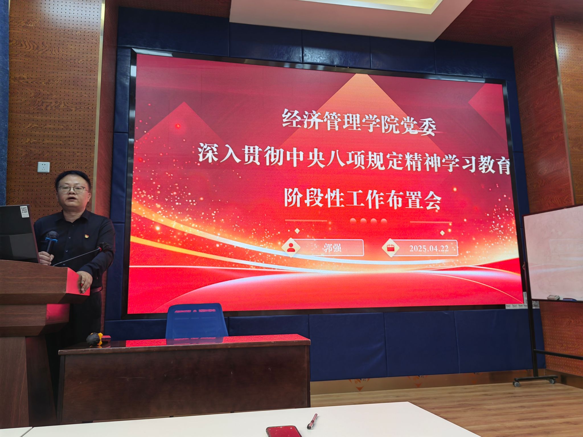 2025422日,学院党委在0218教室召开深入贯彻中央八项规定精神学习教育阶段性工作布置会,学院党委书记郭强、副书记余小英、党委组织员以及师生党支部书记30余人参加了会议。