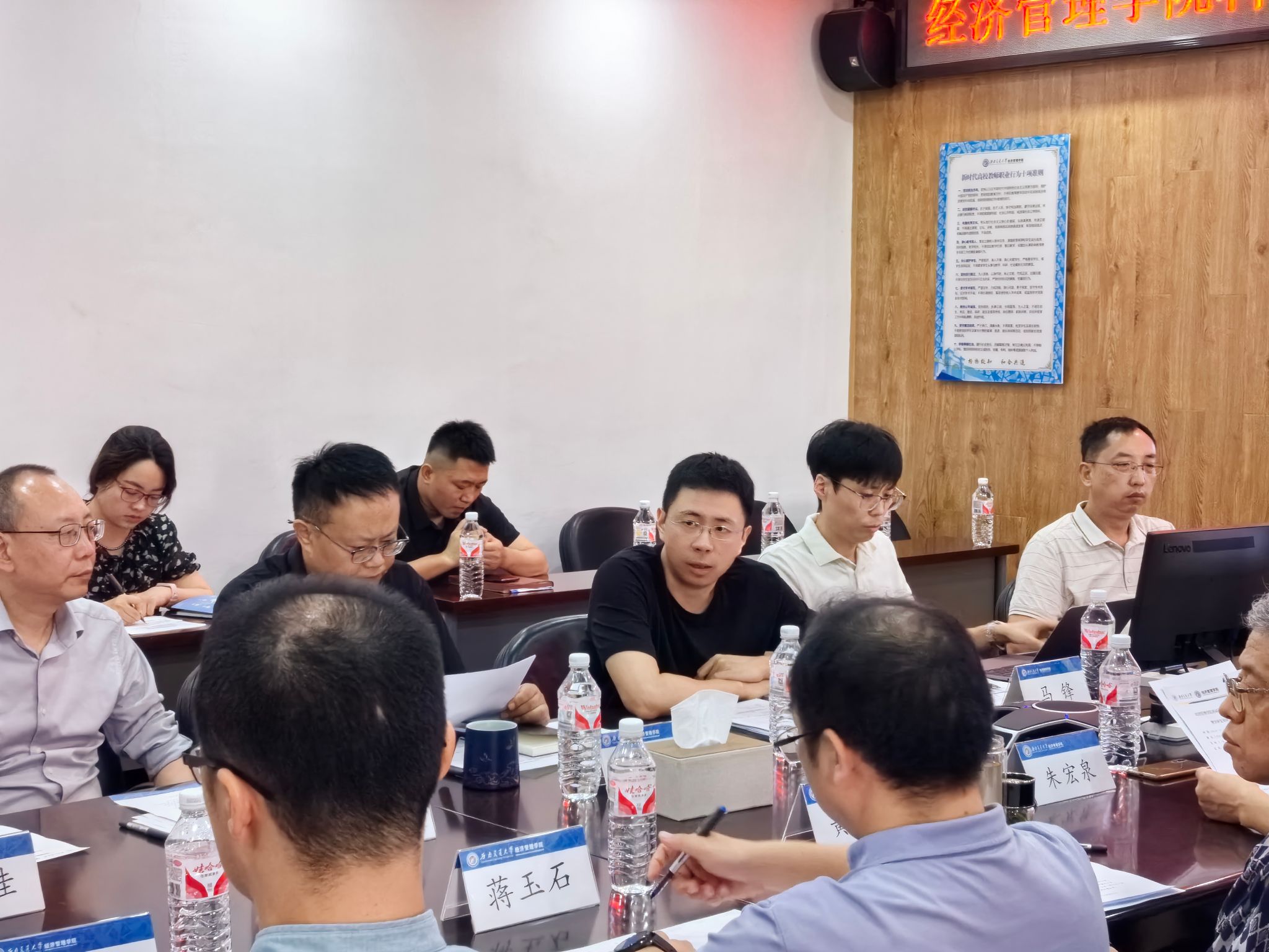 随后,马锋副院长详尽阐述了学院近年来的科研概况与学科评估的精细指标,为与会者提供了全面而深入的数据支撑。韩科院长则在此基础上,直击科研团队发展中的痛点与难点,围绕成果影响力提升、重大成果孵化、青年教师科研引导以及科研教学深度融合等议题,提出了一系列富有前瞻性和针对性的指导意见。副院长李良、聂佳佳及各团队负责人、成员与学系主任纷纷建言献策,围绕学院未来发展蓝图展开了热烈而深入的讨论。