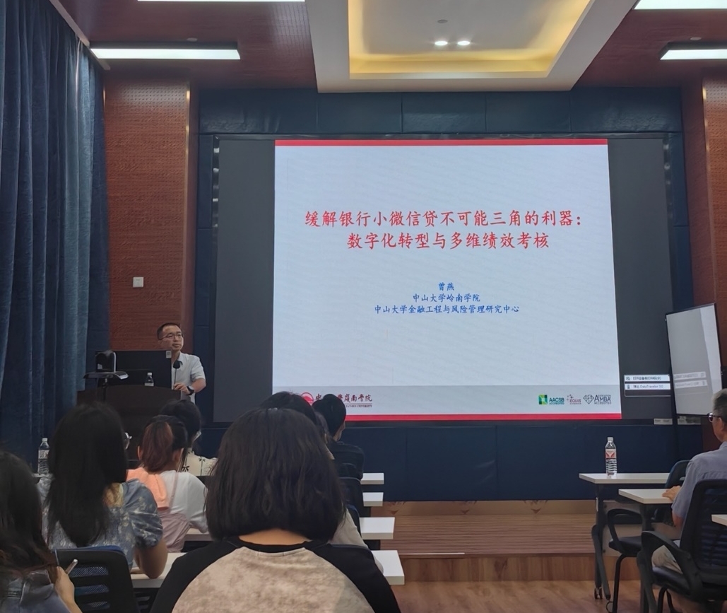 为我院师生带来了一场题为“缓解银行小微信贷不可能三角的利器:数字化转型与多维绩效考核”的学术讲座。本次活动由我院副院长马锋主持,学院金融与财务学系朱宏泉教授等教师及研究生参加了此次活动,马锋副院长介绍了曾燕教授的学术成果,并对曾燕教授表示了欢迎与诚挚的感谢。