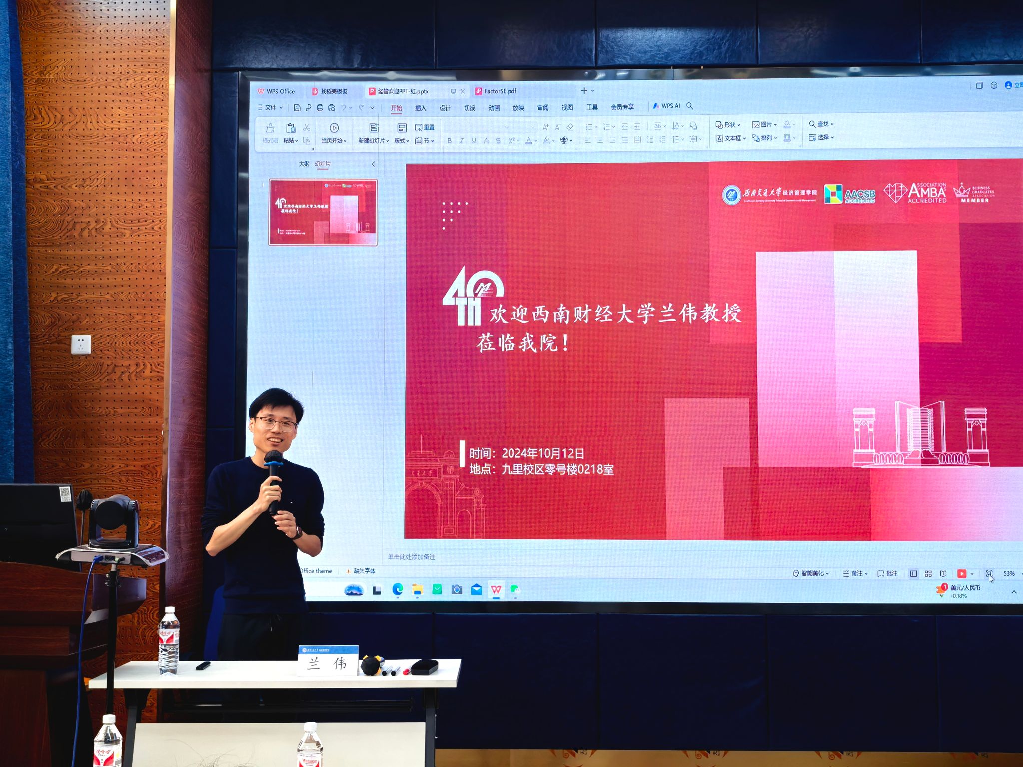 2024年10月12日上午,西南财经大学统计学院副院长兰伟教授应邀在九里校区色色啦
